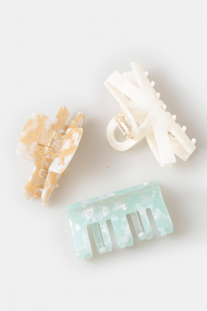 • This showcases a unique mixed shapes 3 piece hair claw set style. Celebrate individuality with this that effortlessly expresses your unique sense of style.
