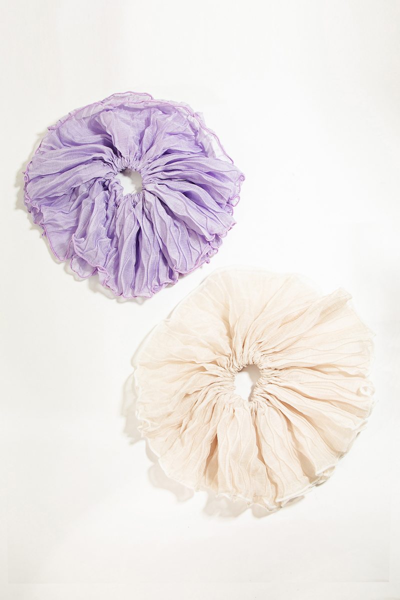 - This headband brings a unique lavender white scrunchie set style. Unveil a new dimension of sophistication as this headband effortlessly enhances the elegance of your ensemble.
