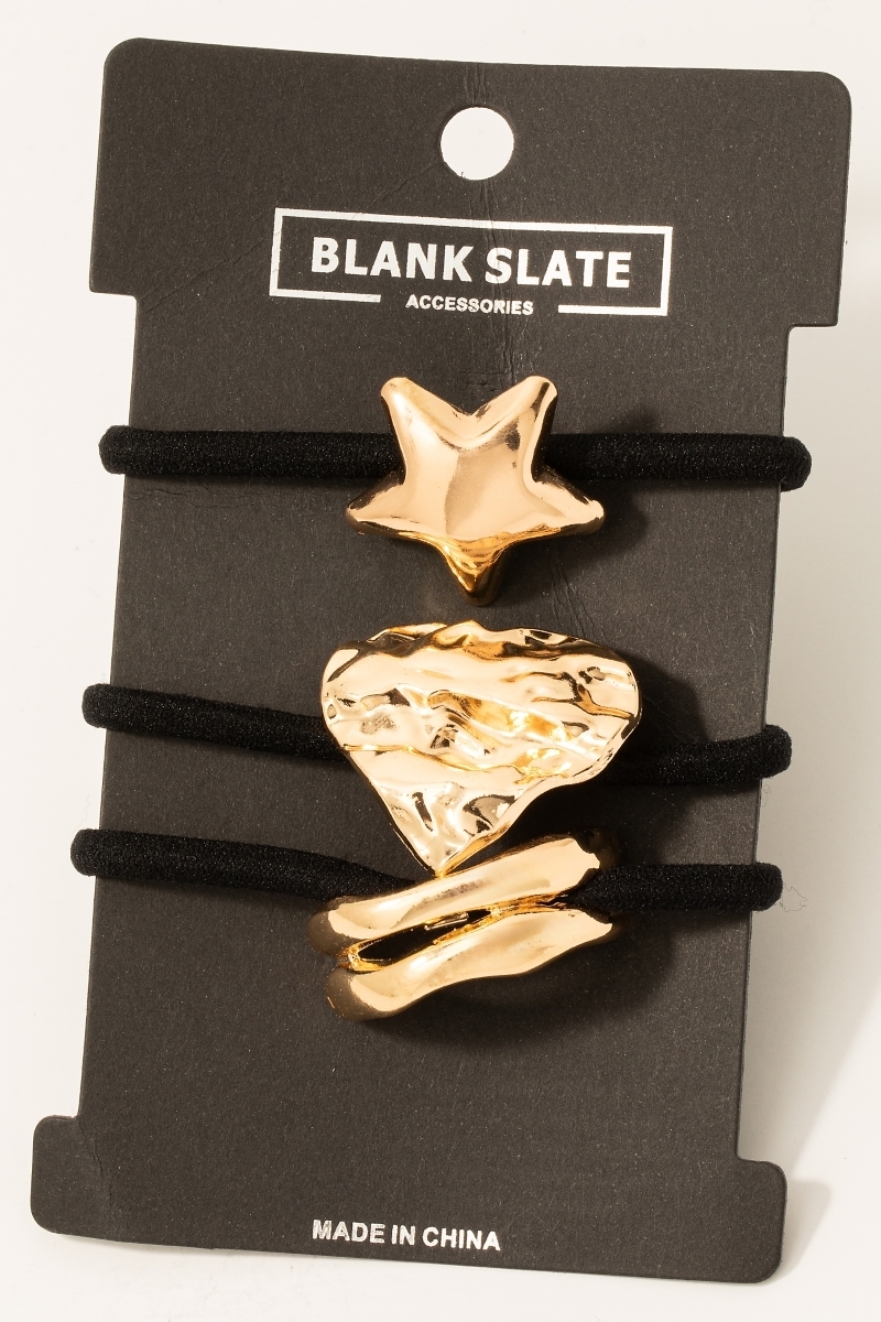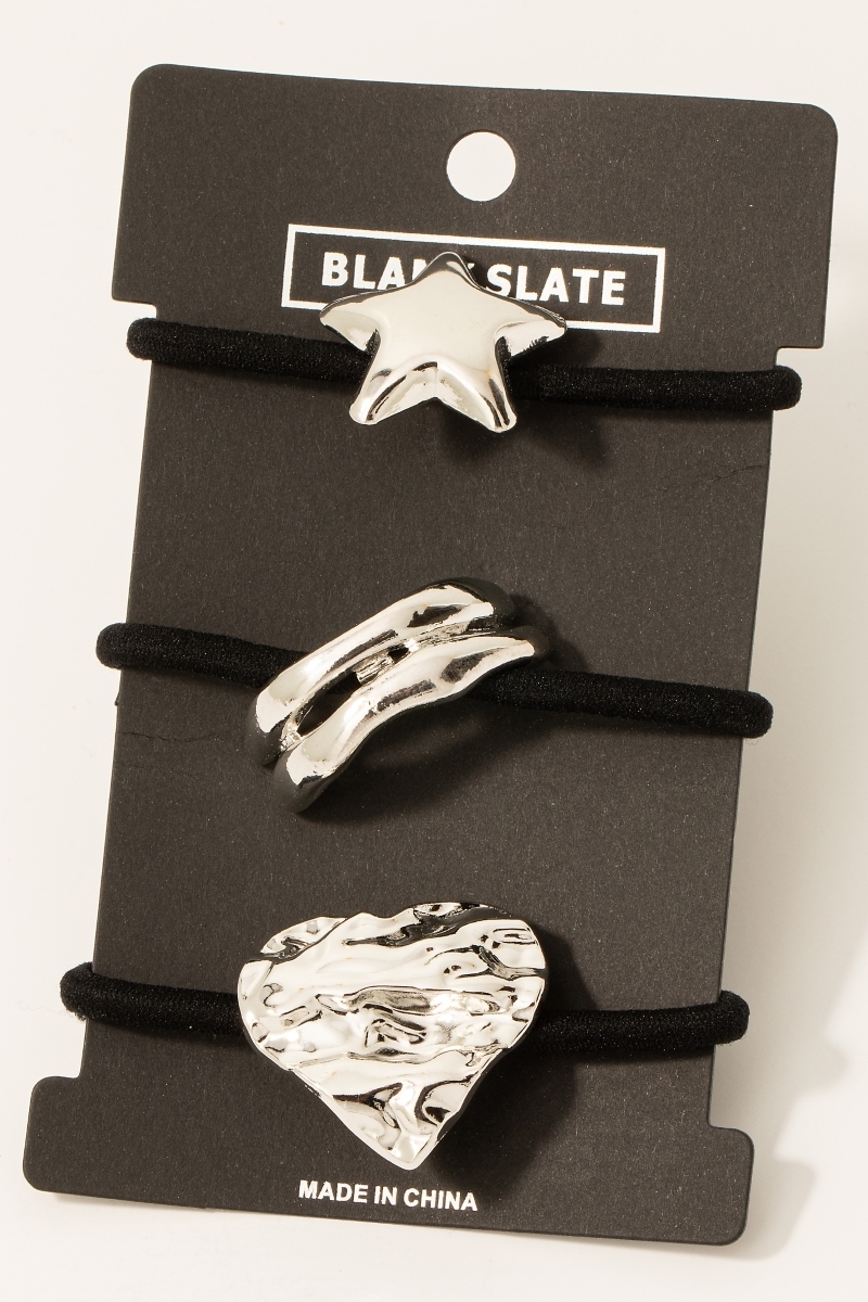 Mixed 3Pc Metallic Charms Hair Tie Set