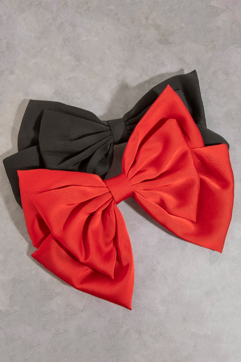 - This hair clip features a fashionable layered bowtie style. Experience a burst of creativity in accessorizing as this piece effortlessly sets the tone for your unique style.