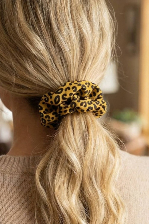 - This scrunchie displays a vibrant leopard print hair s set style. Indulge in the allure of exquisite craftsmanship as this scrunchie effortlessly adds a touch of luxury to your attire.
