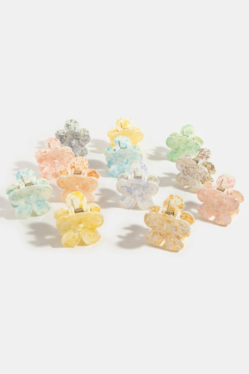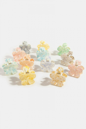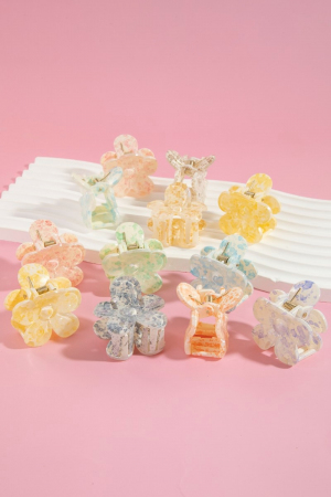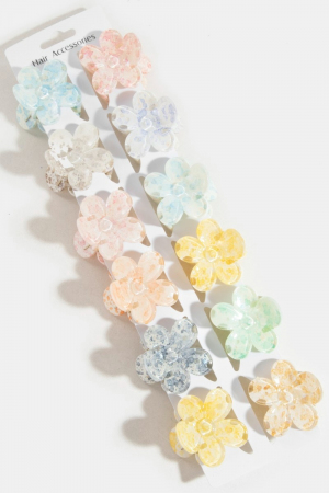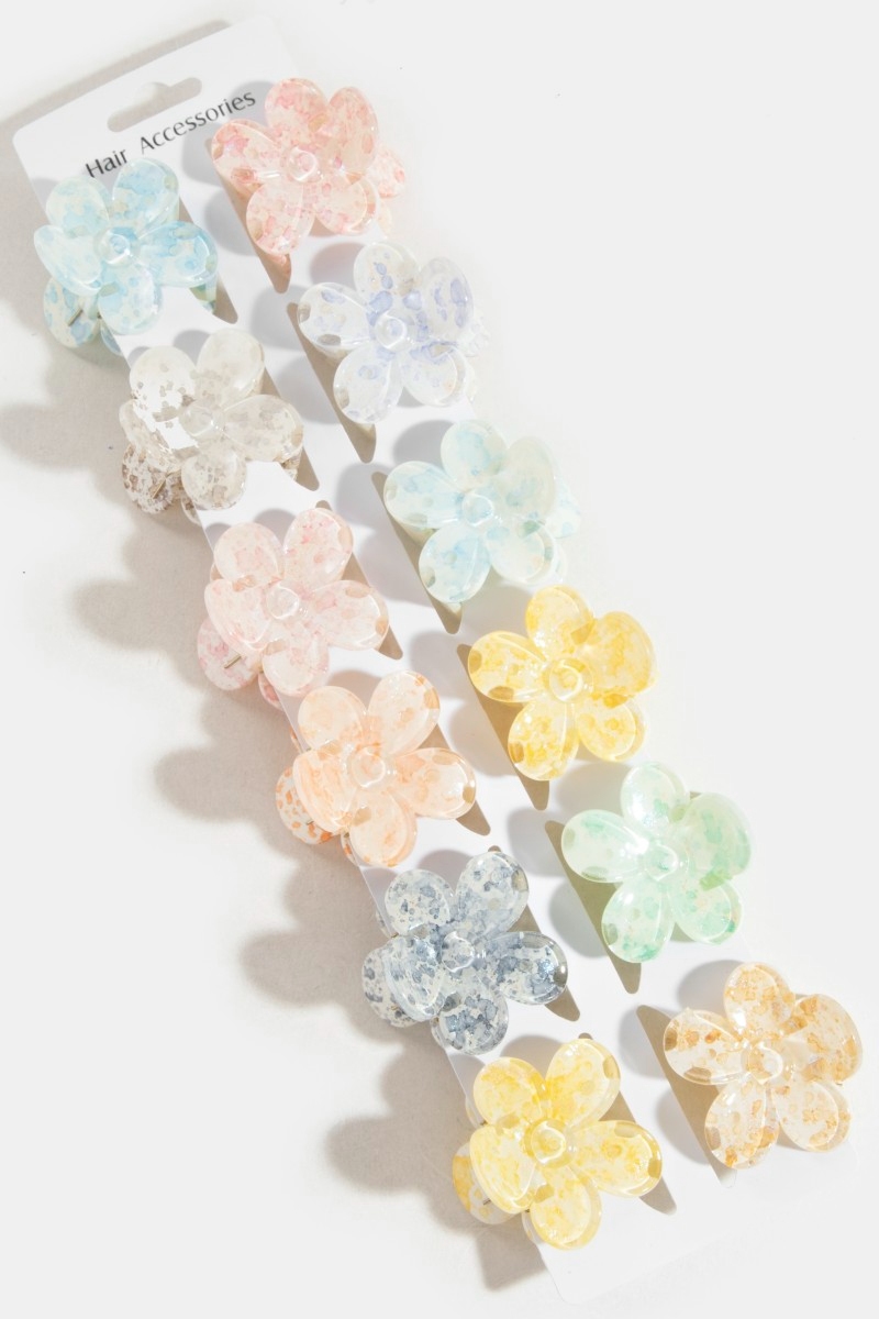 - This displays a fashionable 12pc mixed paint splatter flower hair claw set style. Immerse yourself in the world of understated glamour as this effortlessly exudes timeless appeal.