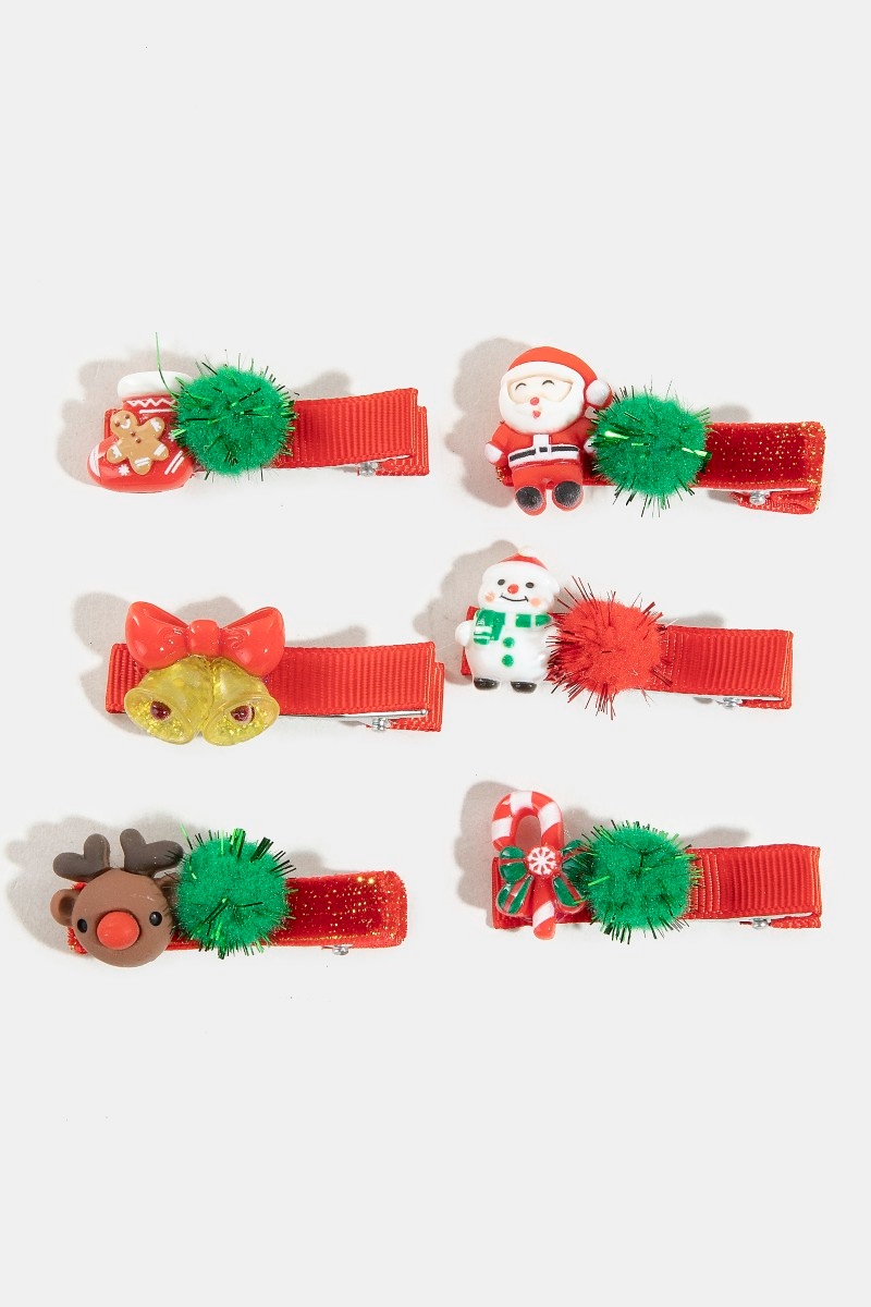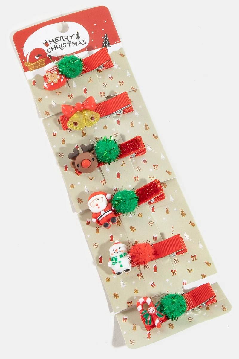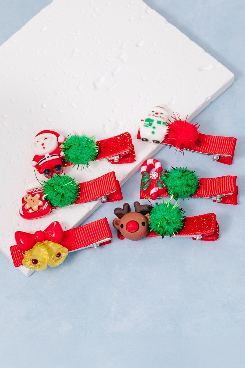 - This hair clip brings a luxurious 6pc festive christmas theme set style. Immerse yourself in the world of understated glamour as this hair clip effortlessly exudes timeless appeal.