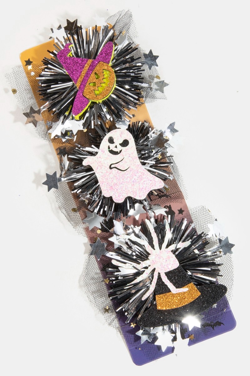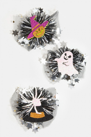 - This hair clip introduces a unique mixed mesh pompom 3pc halloween set style. Elevate your ensemble with this hair clip that effortlessly captures the essence of refined fashion.