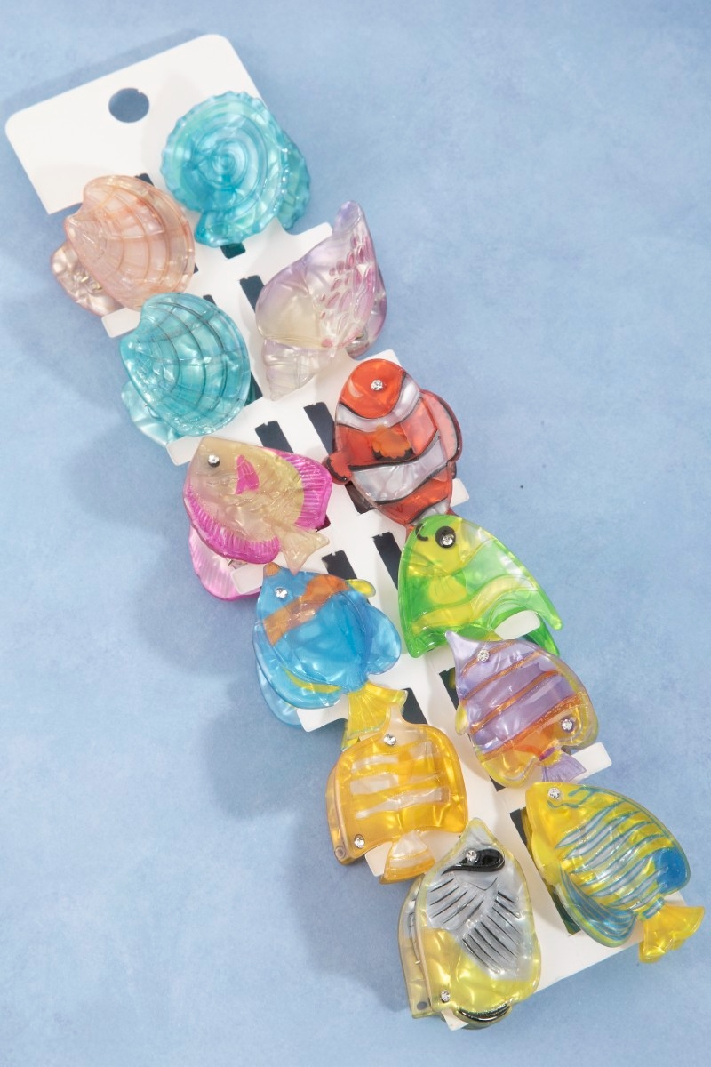 - This hair clip brings a stunning twelve piece assorted sealife mini s style. Celebrate individual style with this versatile, eye-catching addition.