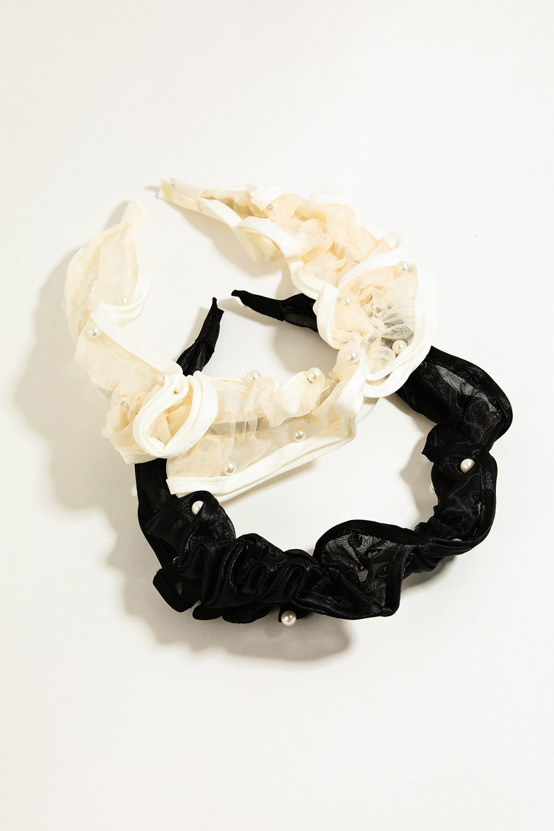 • This headband displays a vibrant two piece pearl fabric set style. Elevate your ensemble with this chic, timeless headband.