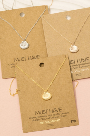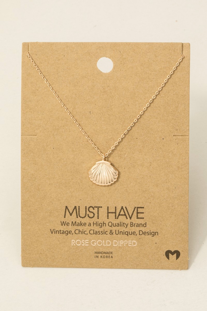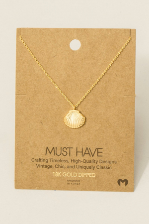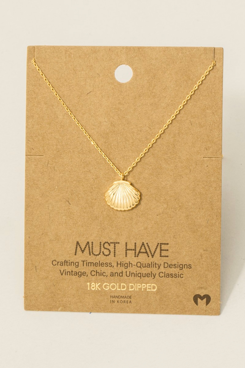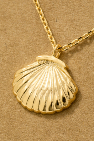 - This necklace introduces a stunning gold dipped clam shell pendant style. Experience a subtle blend of modernity and classic charm as this necklace effortlessly adorns your ensemble.