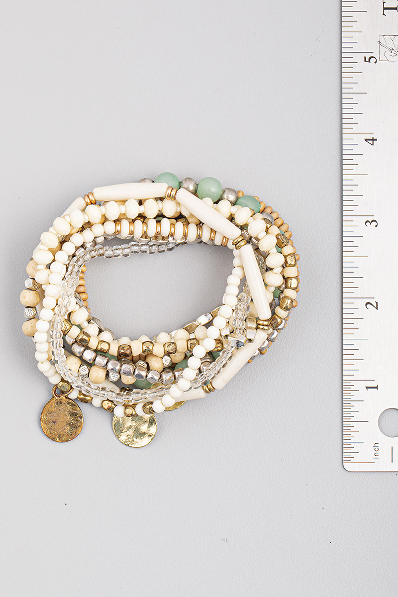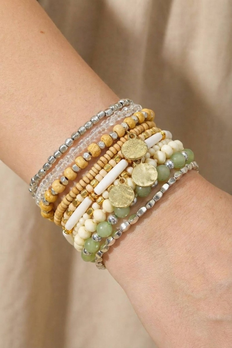 - This bracelet features a fashionable multi bead stretch assorted set style. Experience a subtle blend of modernity and classic charm as this bracelet effortlessly adorns your ensemble.