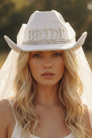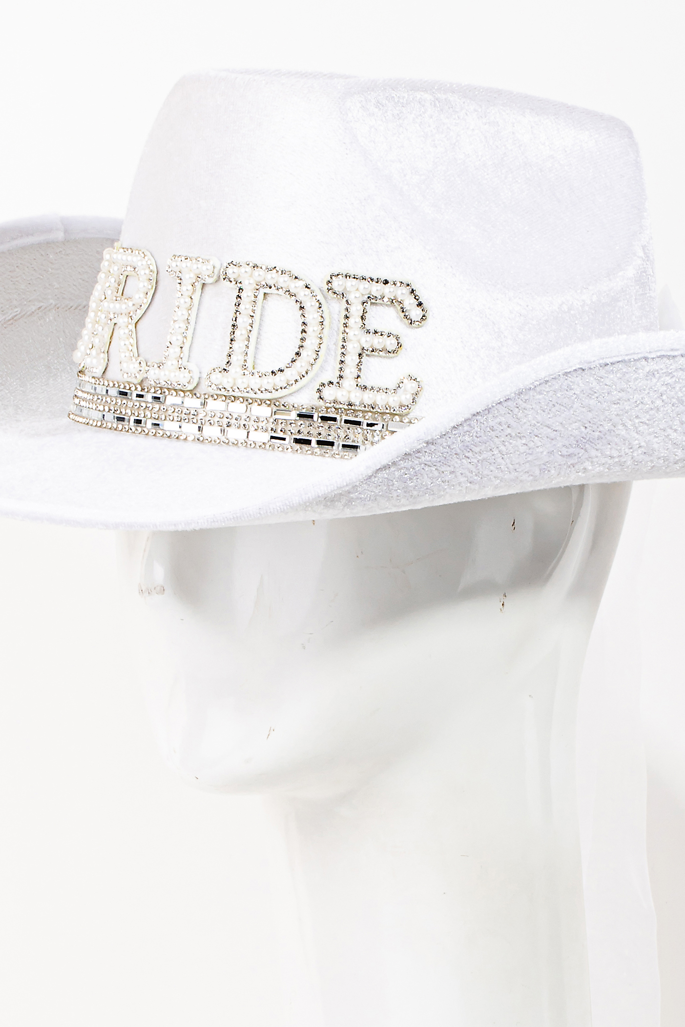 - This cowboy hat brings a stunning pearl rhinestone stud ribbon bride western style. Experience the joy of accessorizing with this piece that effortlessly combines versatility and charm.