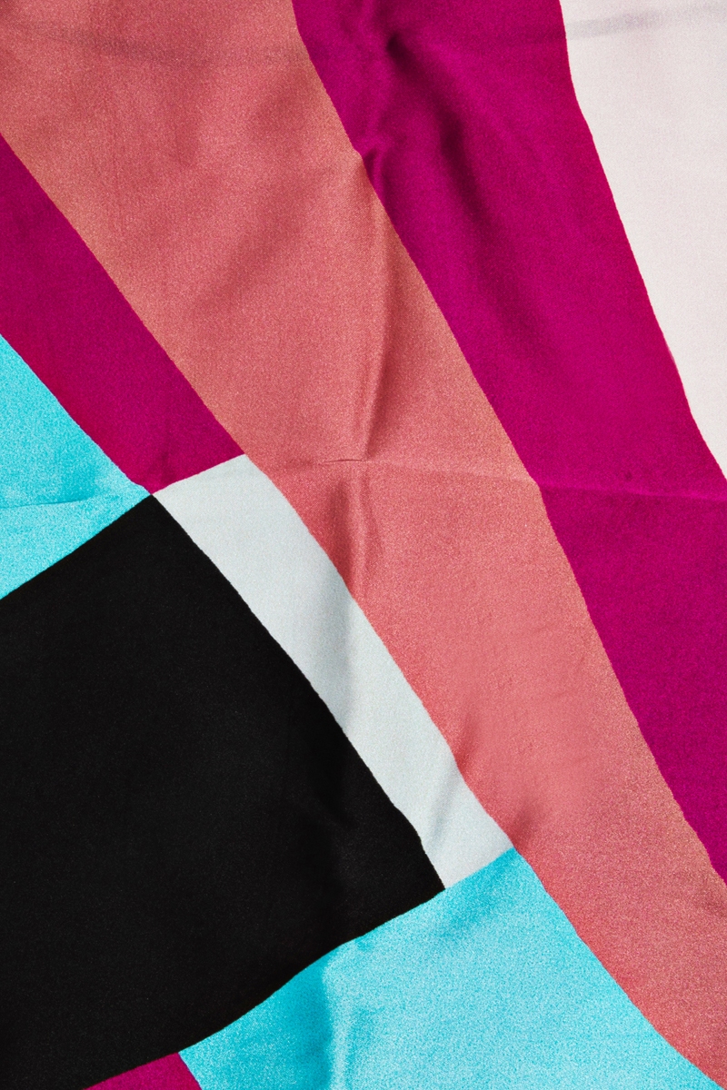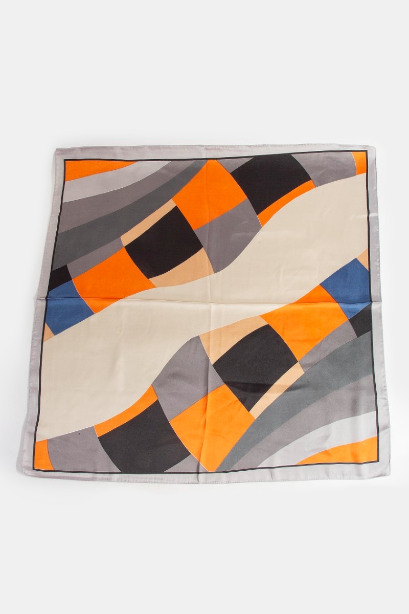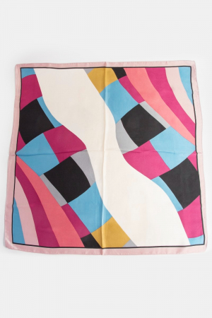 - This scarf showcases a unique striped color square bandana style. Indulge in the allure of exquisite craftsmanship as this scarf effortlessly adds a touch of luxury to your attire.