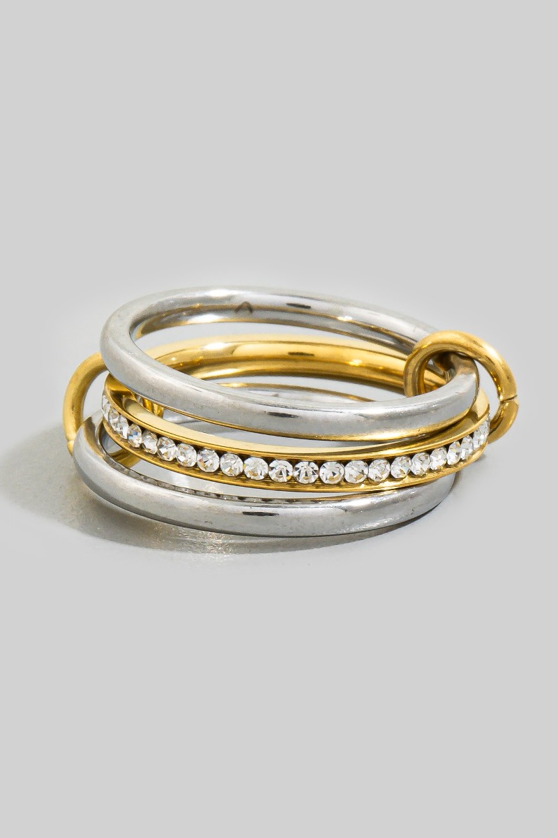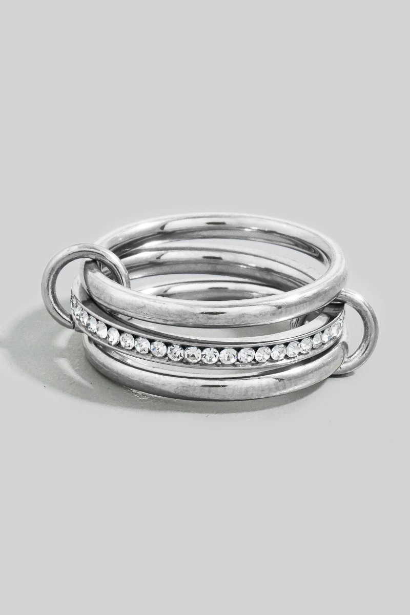 - This ring set showcases a unique triple ring cubic zirconia band linked rings set style. Celebrate individuality with this ring set that effortlessly expresses your unique sense of style.