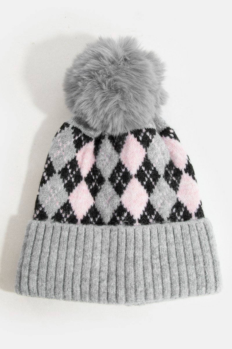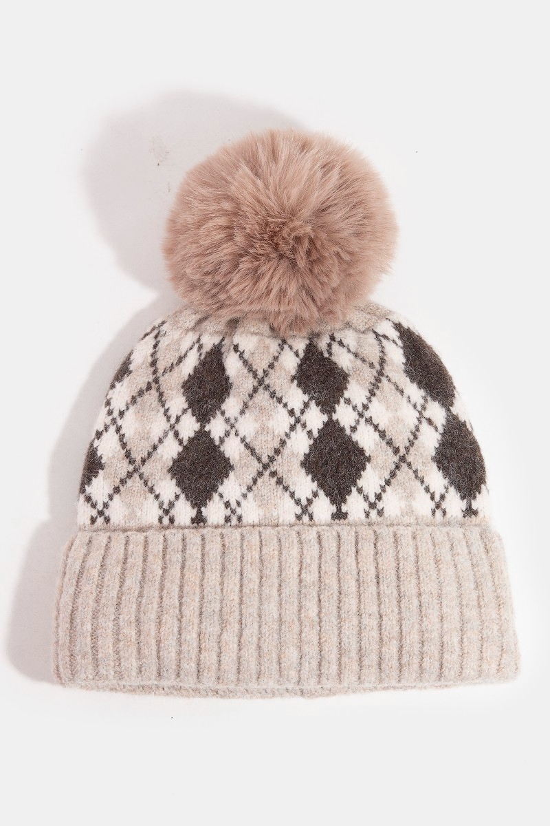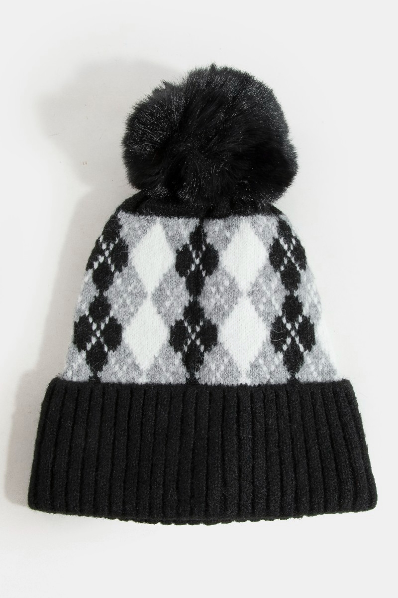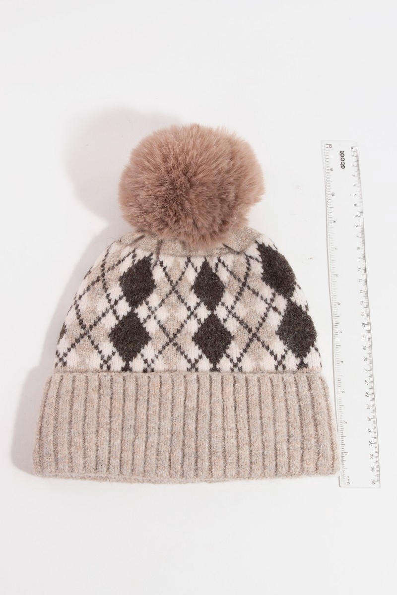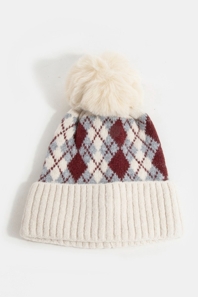 - This beanie adds a modern argyle knit pom style. Redefine your look effortlessly with this standout, on-trend piece.