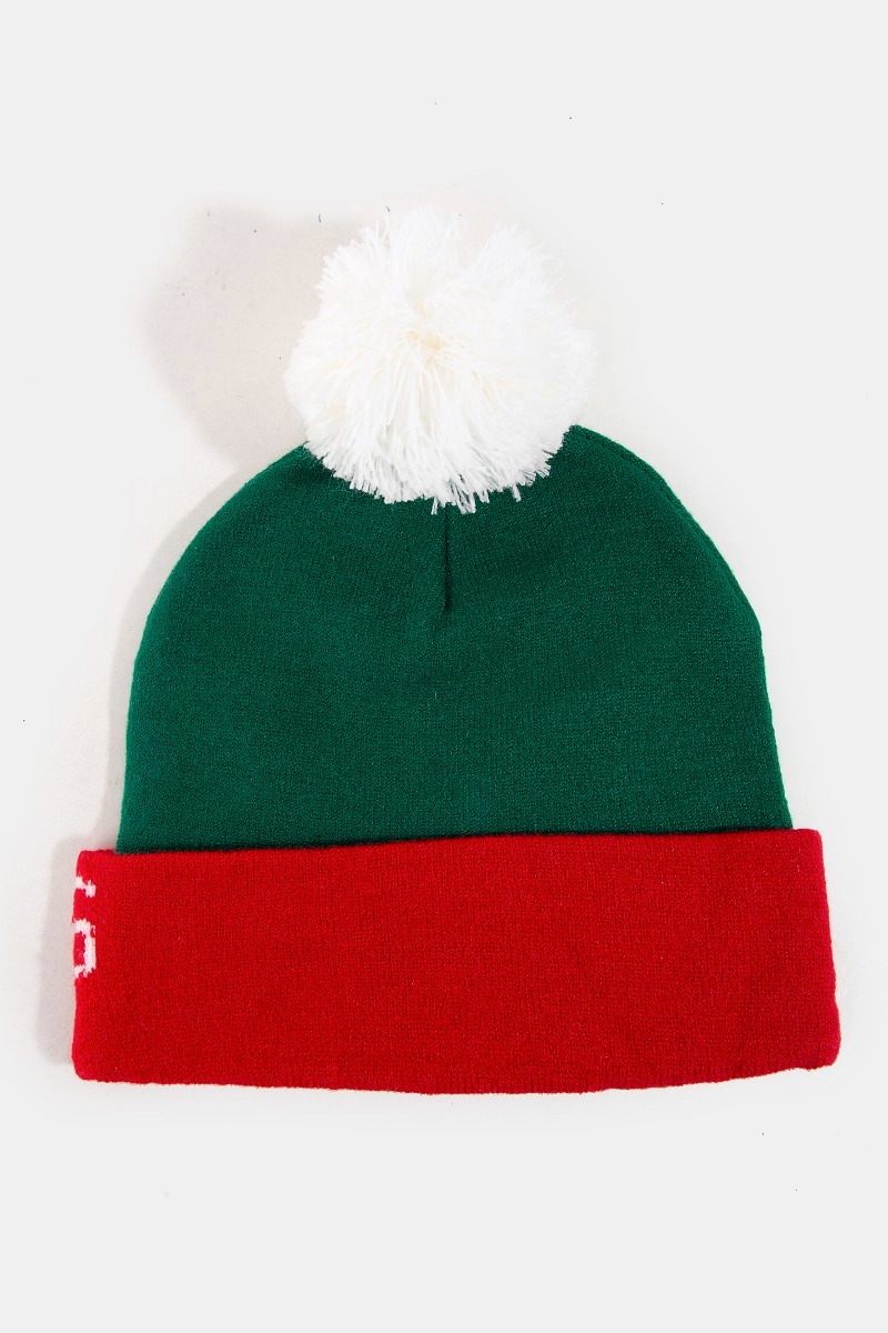Abstract Diamond Stripe Knit Pom Pom Beanie