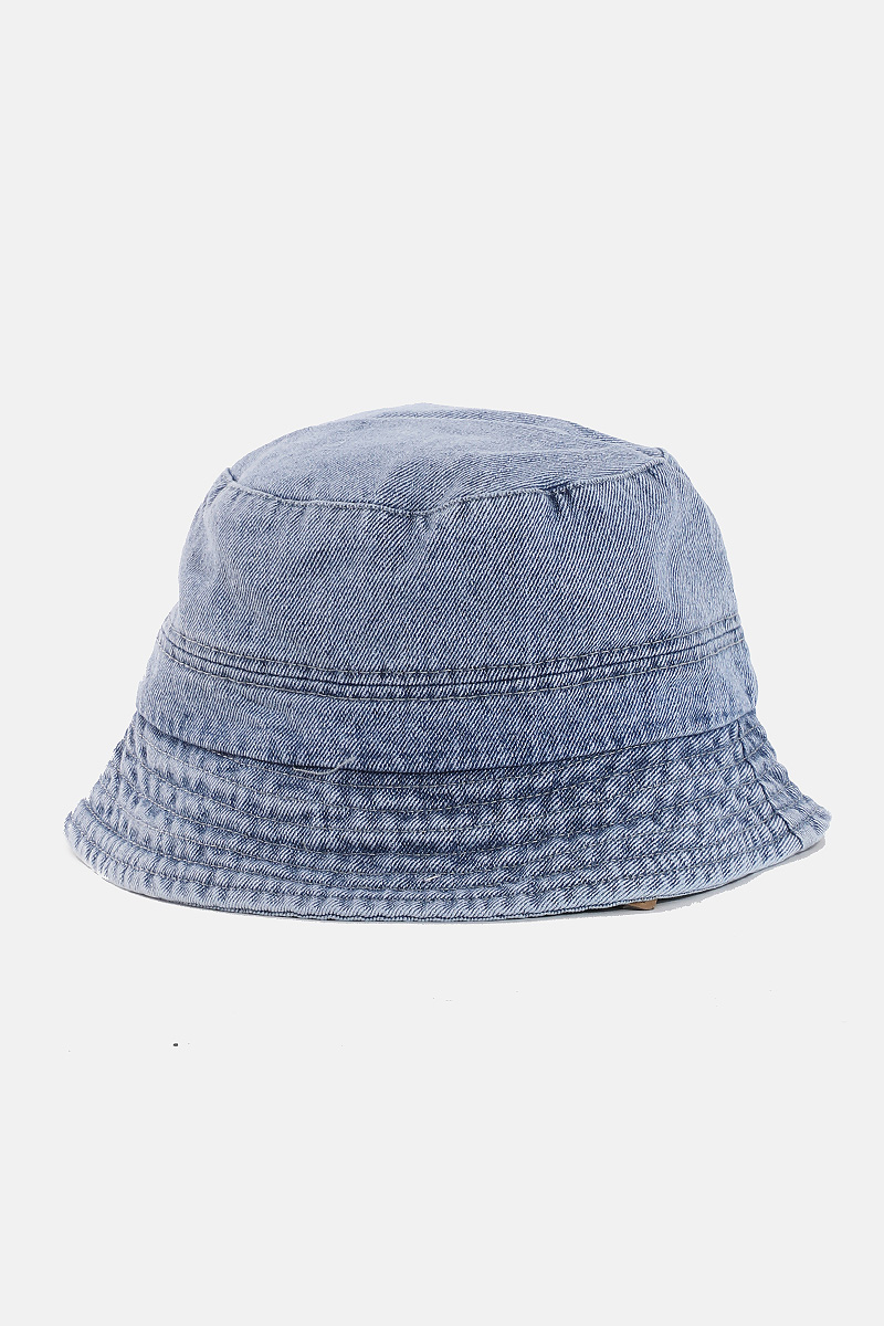 - This bucket hat showcases a unique denim style. Experience a burst of creativity in accessorizing as this piece effortlessly sets the tone for your unique style.