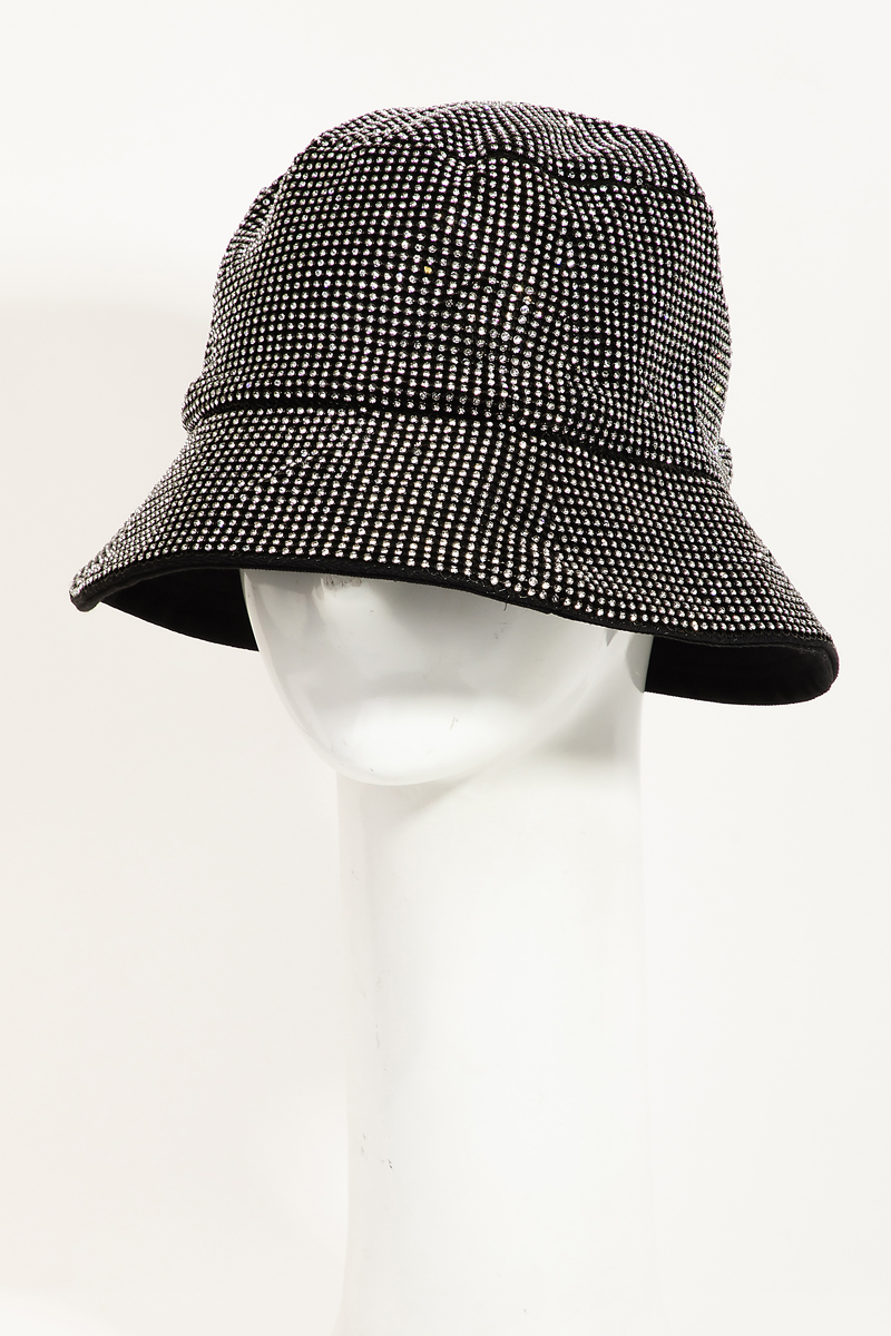• This bucket hat brings a luxurious rhinestone studded style. Savor the allure of detailed craftsmanship in this exquisite bucket hat.