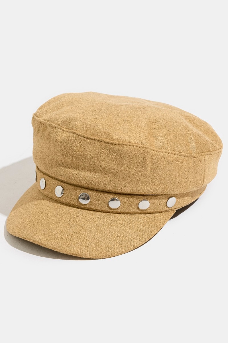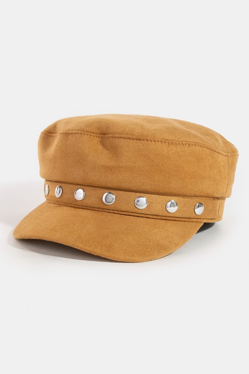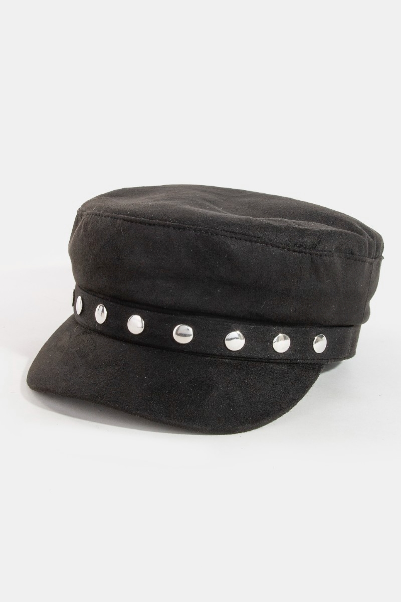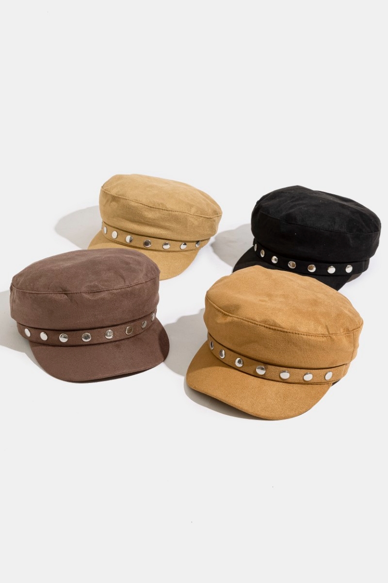 - This hat brings a unique disc studded faux suede beret style. Celebrate individual style with this versatile, eye-catching addition.