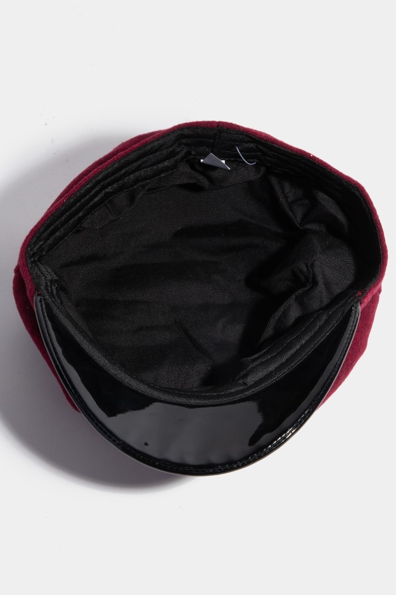 - This cap displays a vibrant faux leather trim cabbie style. Immerse yourself in the world of understated glamour as this cap effortlessly exudes timeless appeal.