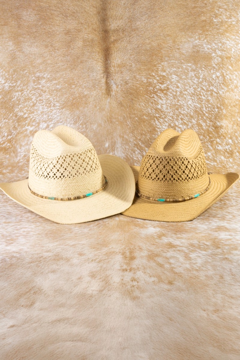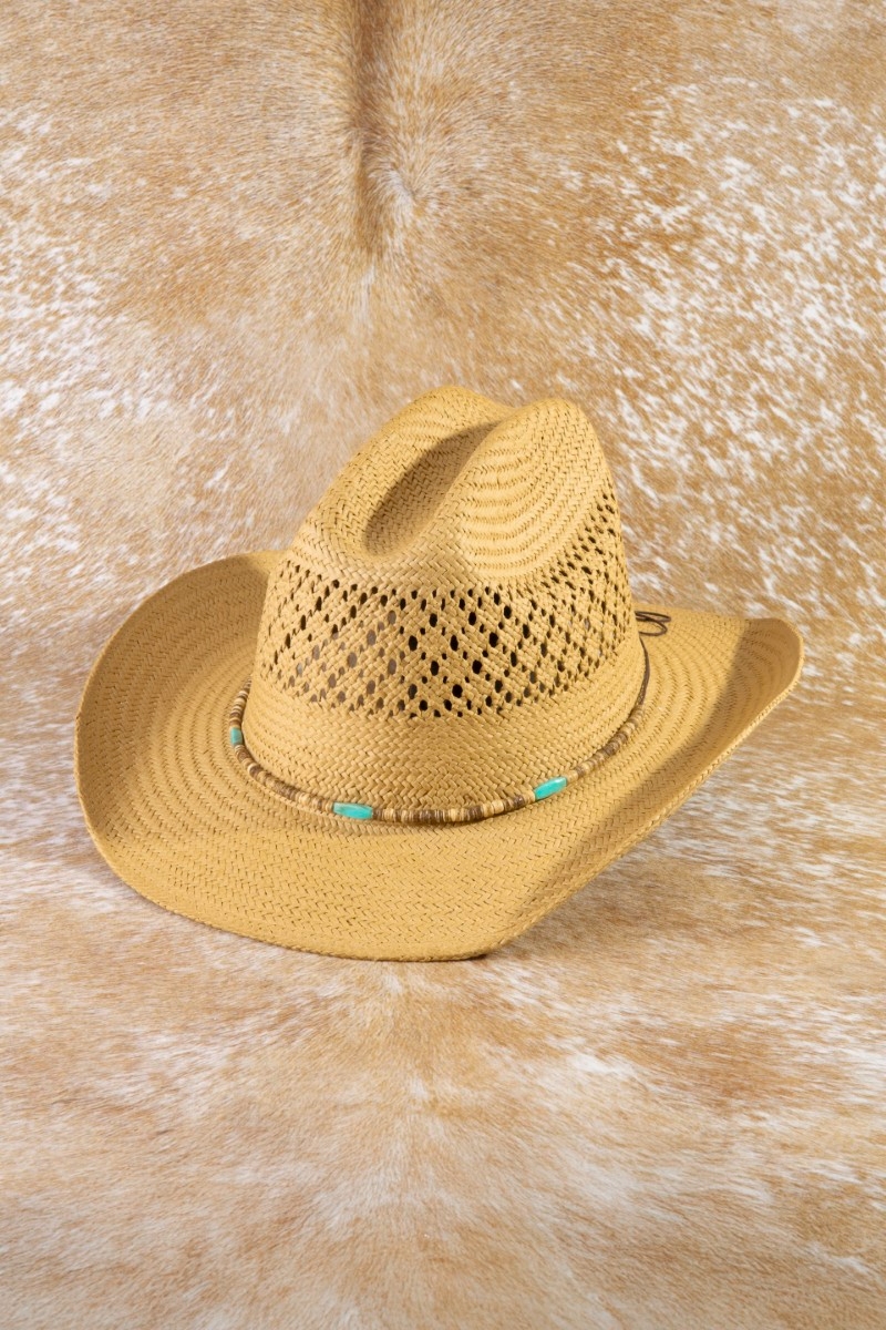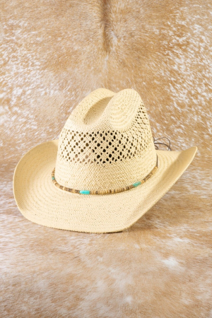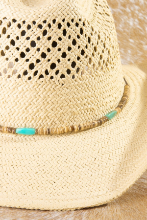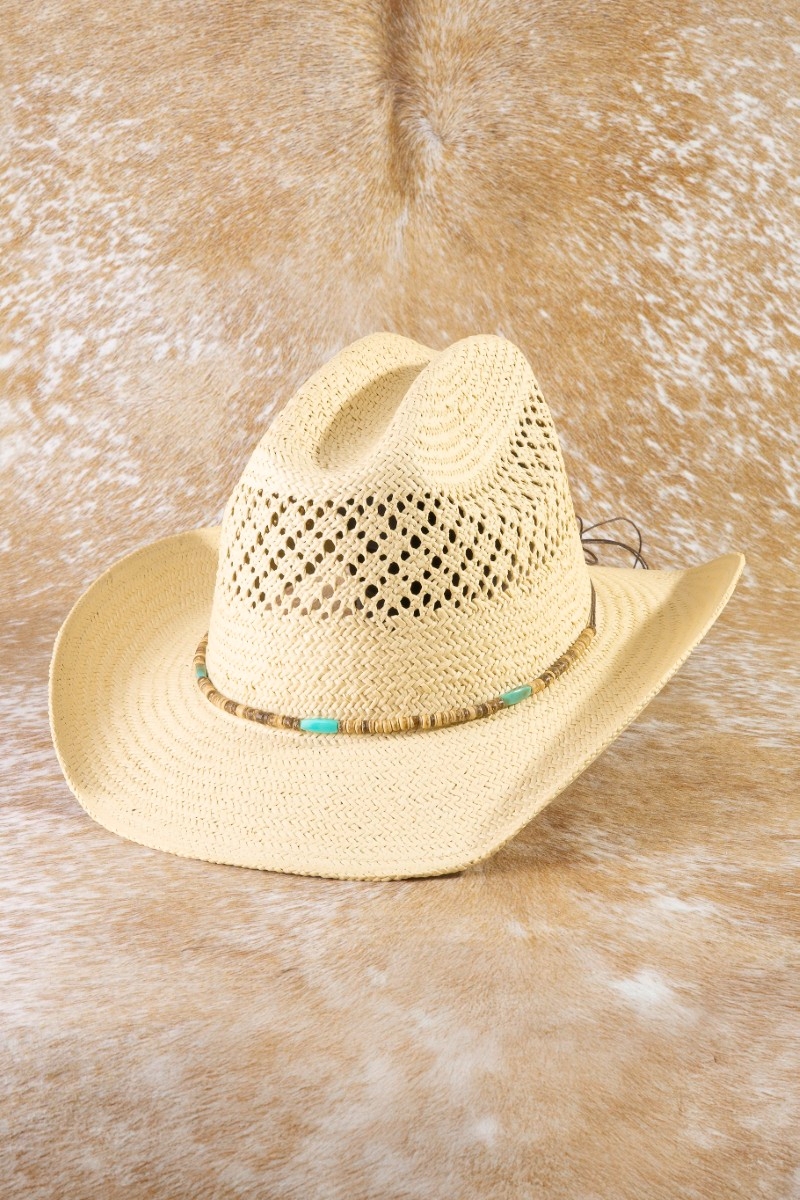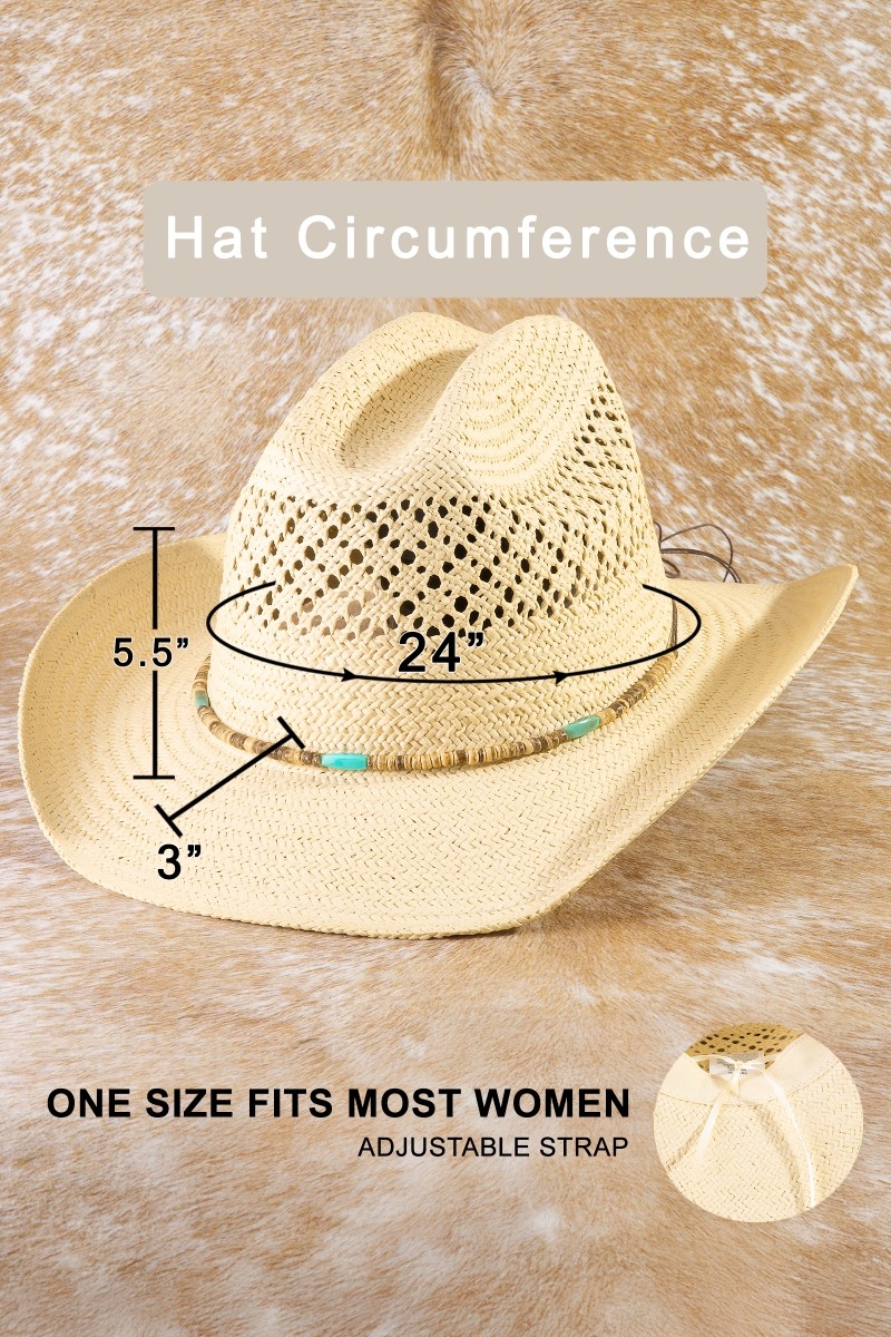 - This cowboy hat brings a luxurious assorted beads strap straw style. Immerse yourself in the world of understated glamour as this cowboy hat effortlessly exudes timeless appeal.