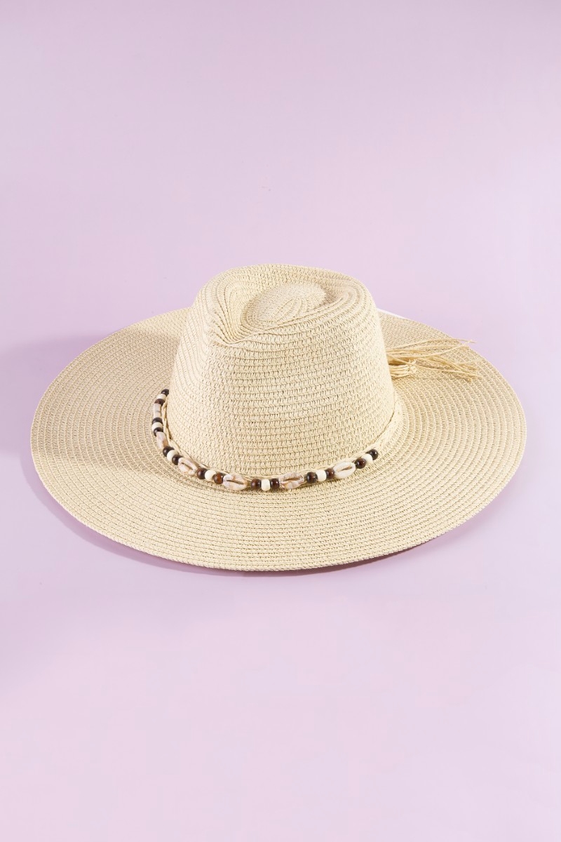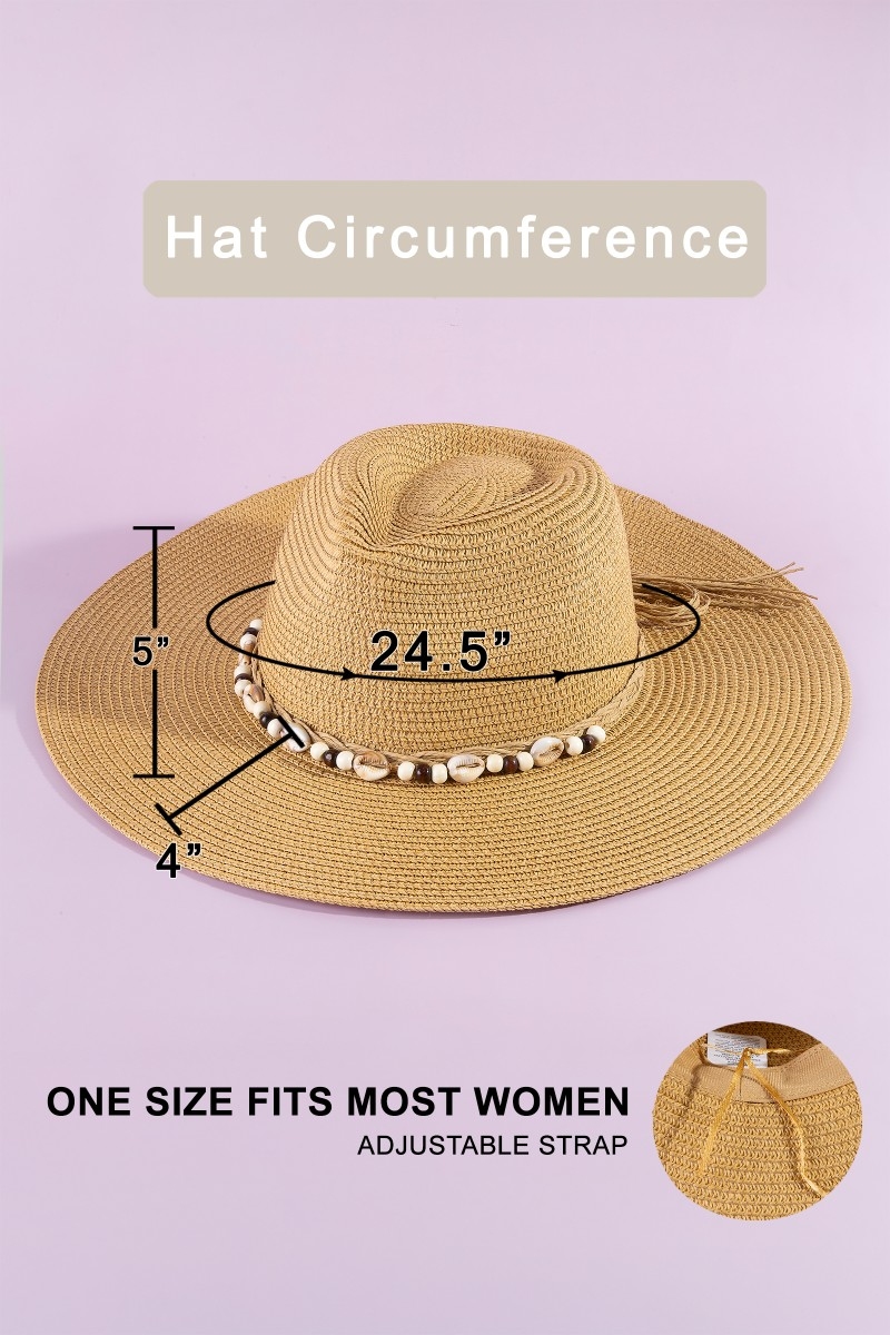 • This cowboy hat introduces a stunning beaded cowrie shell straw style. Savor the craftsmanship that goes beyond the ordinary, as this cowboy hat effortlessly captivates attention.