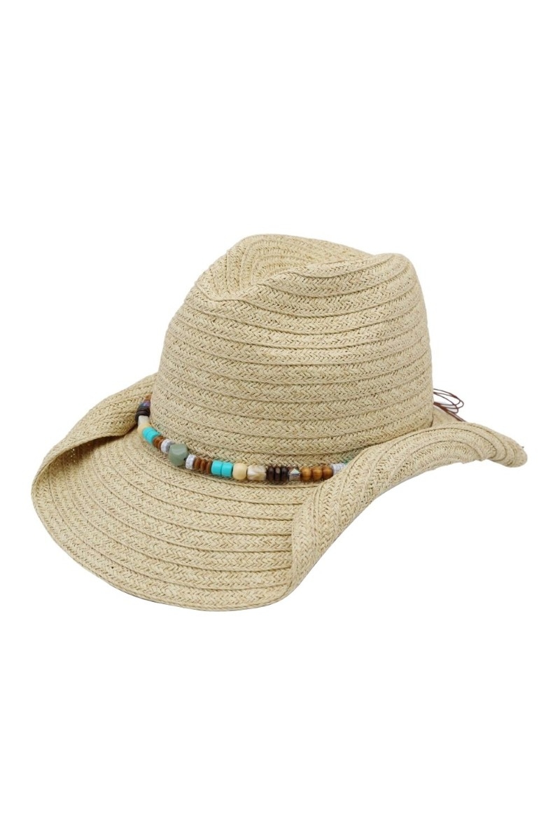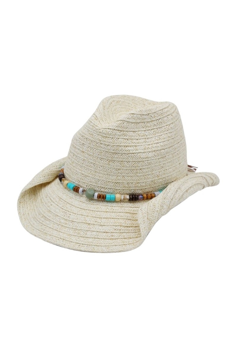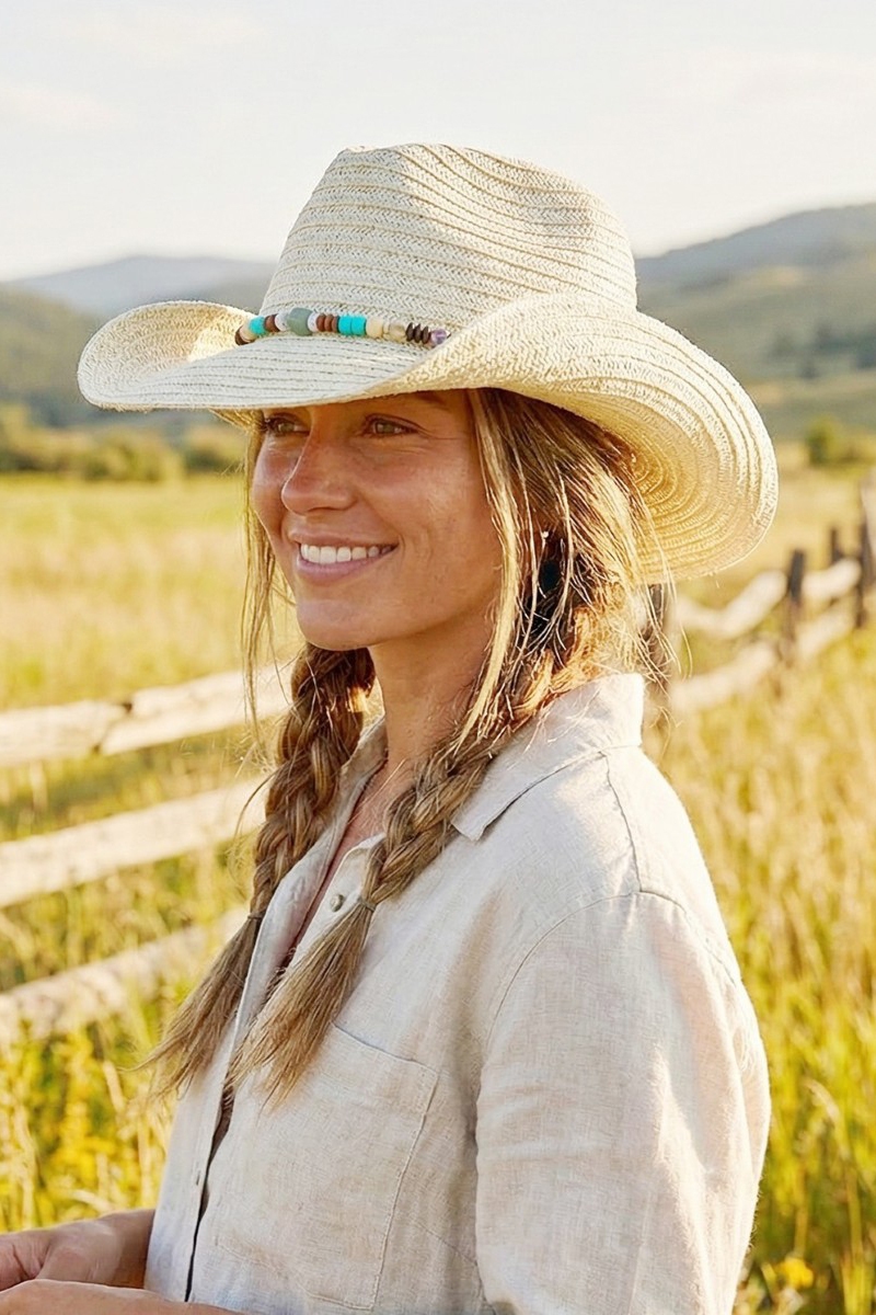 - This cowboy hat showcases a timeless beaded strap straw western style. Savor the craftsmanship that goes beyond the ordinary, as this cowboy hat effortlessly captivates attention.