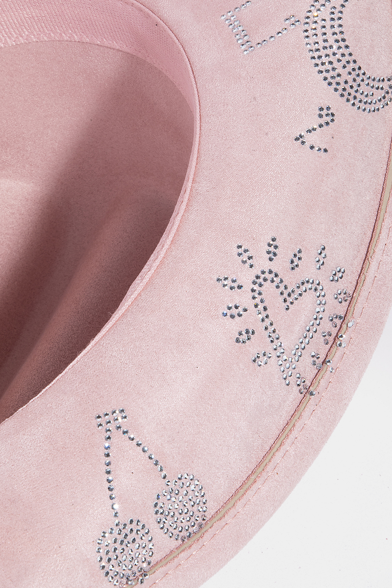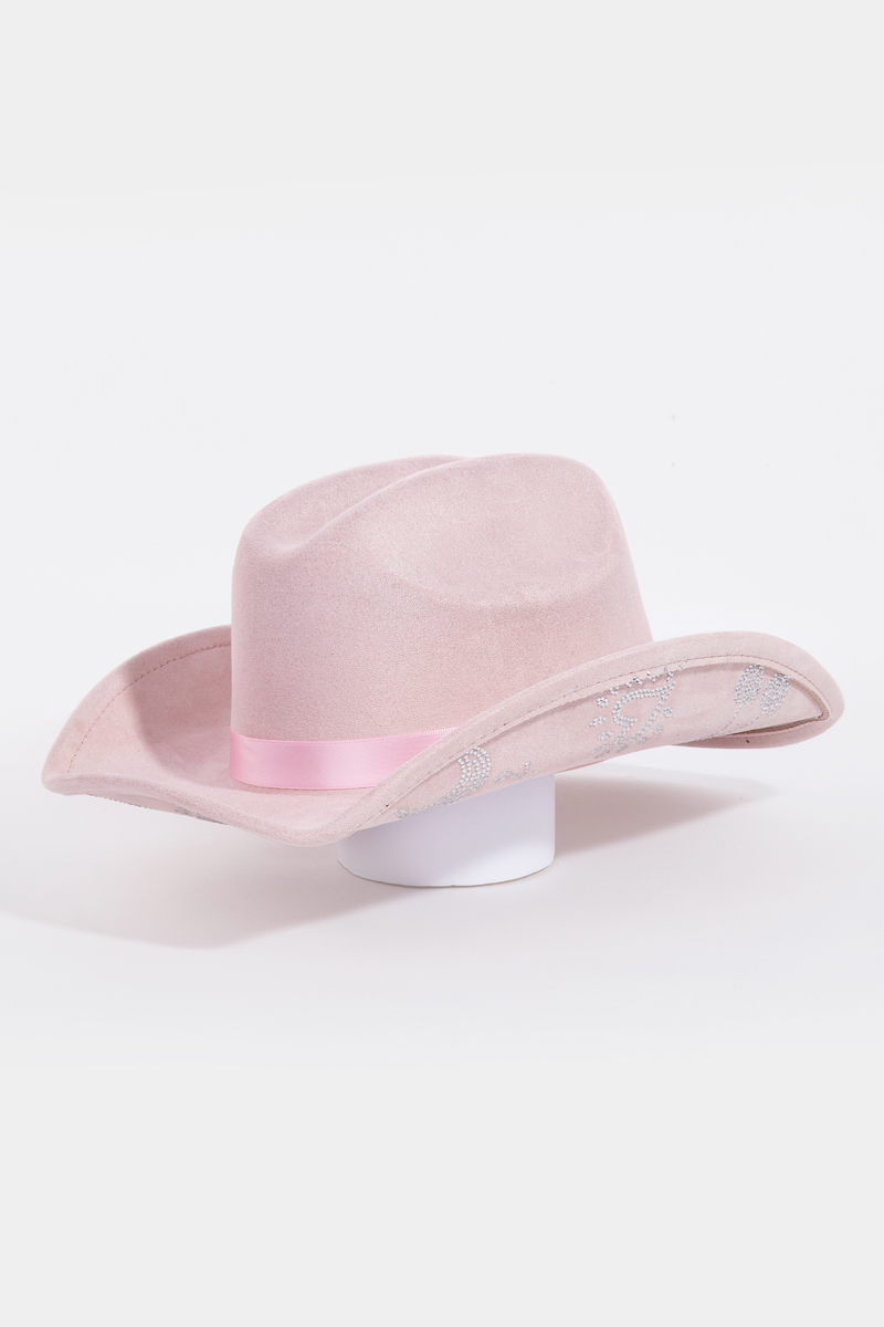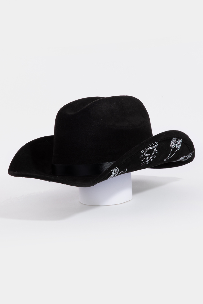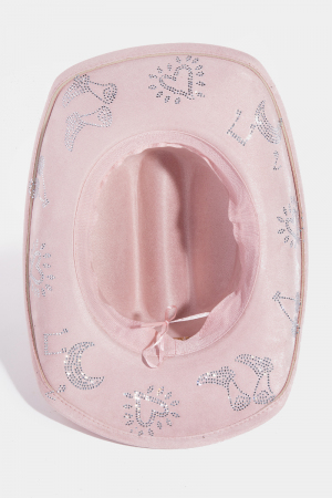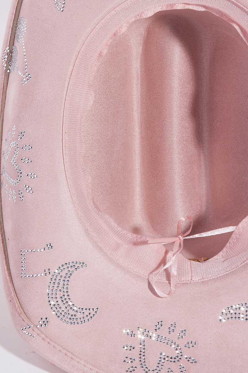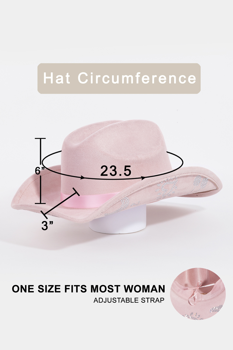 • This cowboy hat showcases a timeless cute rhinestone studded style. Immerse yourself in the details of design, as this cowboy hat effortlessly becomes a conversation starter.