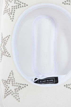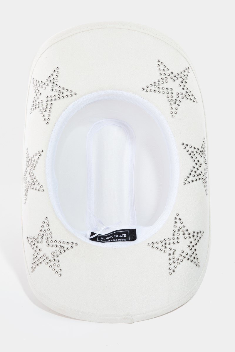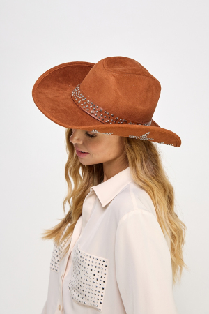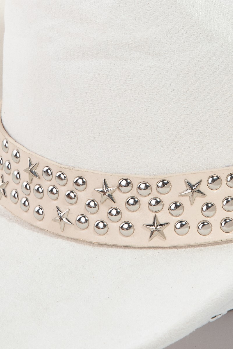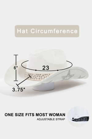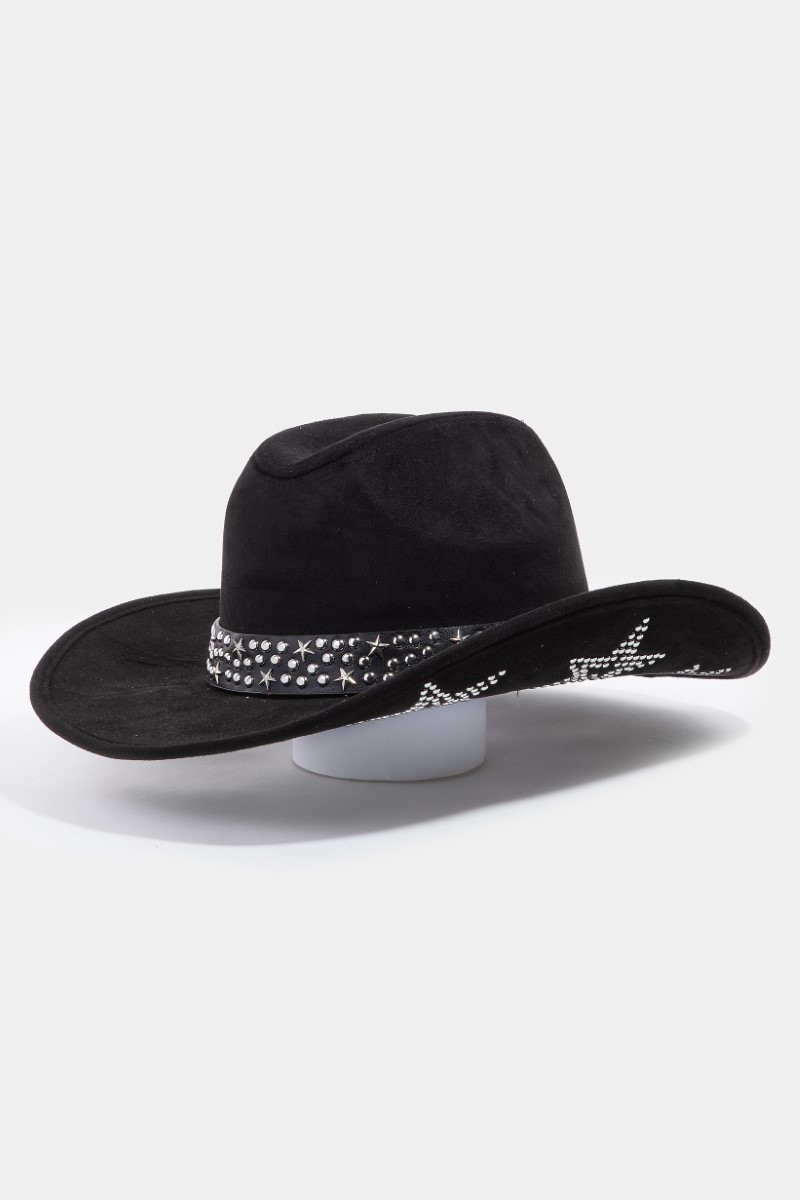 • This cowboy hat introduces a unique embroidered star studded style. Unveil a new dimension of sophistication as this cowboy hat effortlessly enhances the elegance of your ensemble.