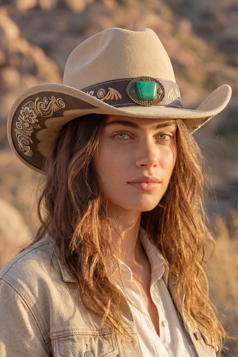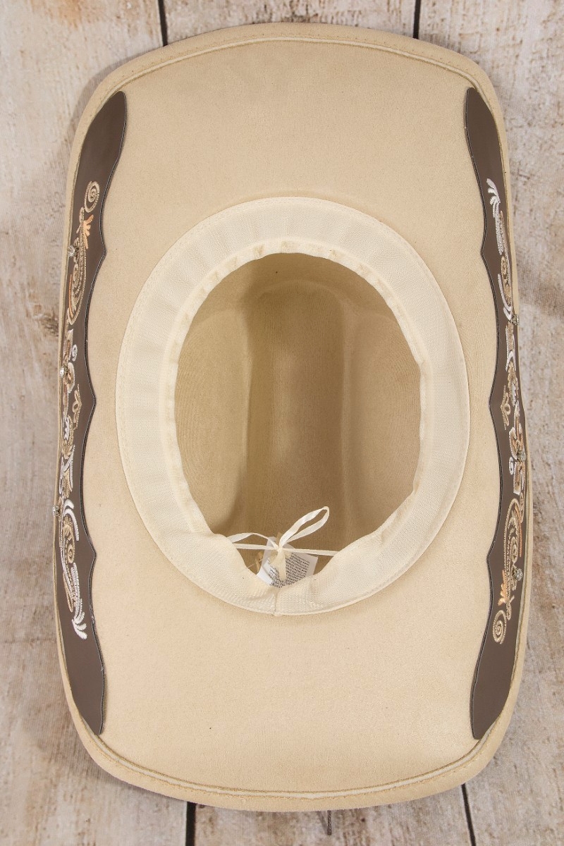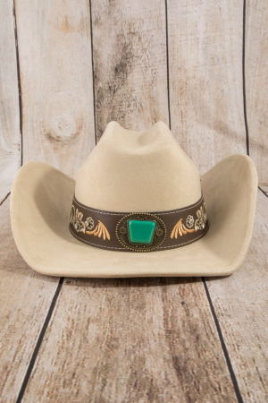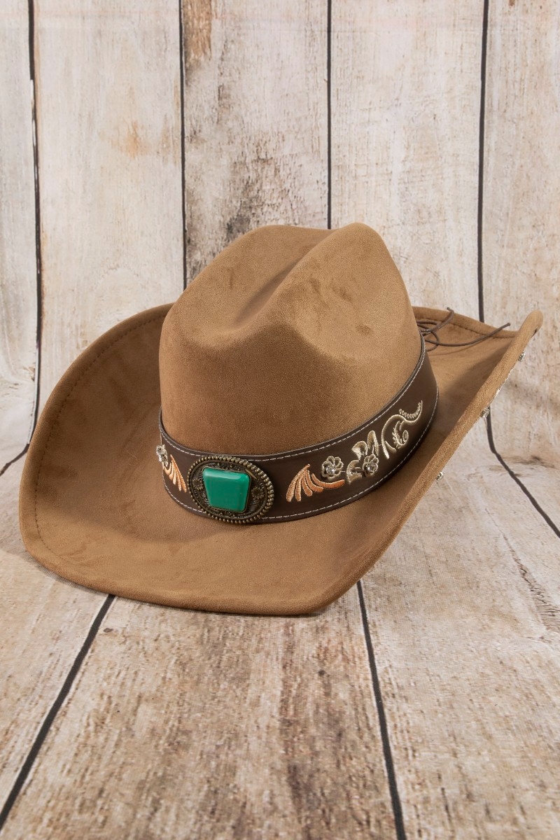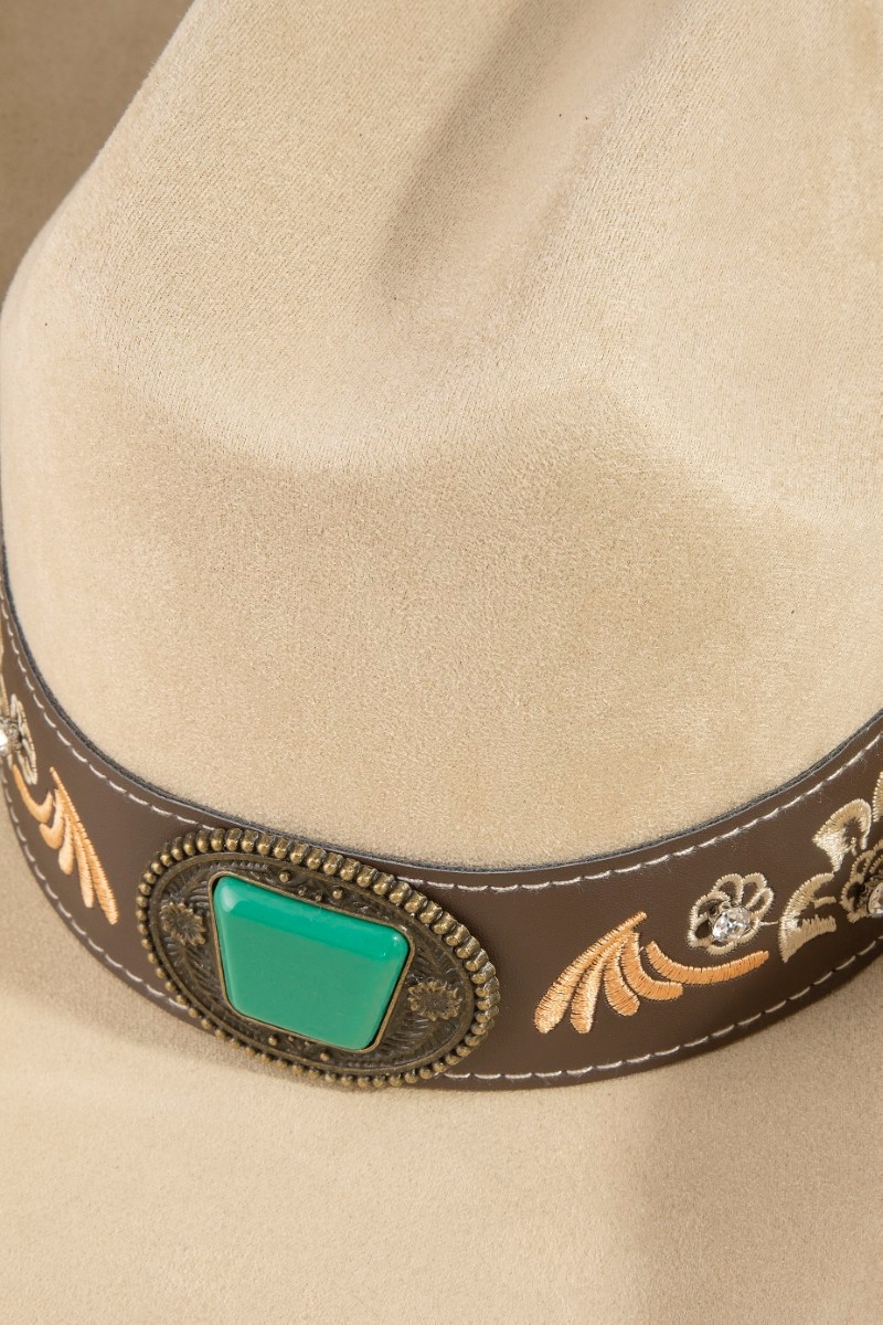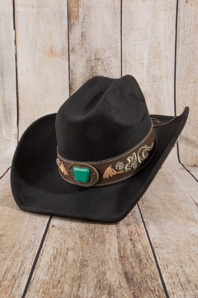 - This cowboy hat showcases a unique embroidered strap with stone western style. Experience a burst of creativity in accessorizing as this piece effortlessly sets the tone for your unique style.