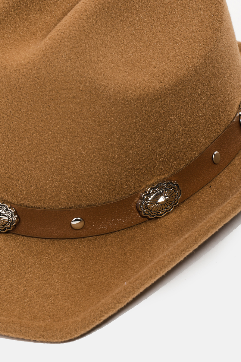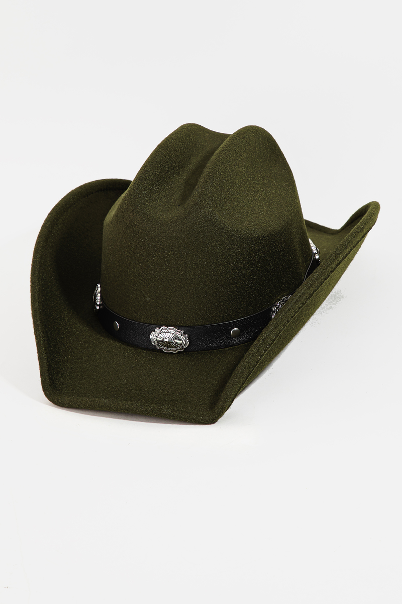 • This cowboy hat brings a stunning oval coin belt style. Embark on a journey of sartorial refinement as this cowboy hat effortlessly complements your fashion sense.