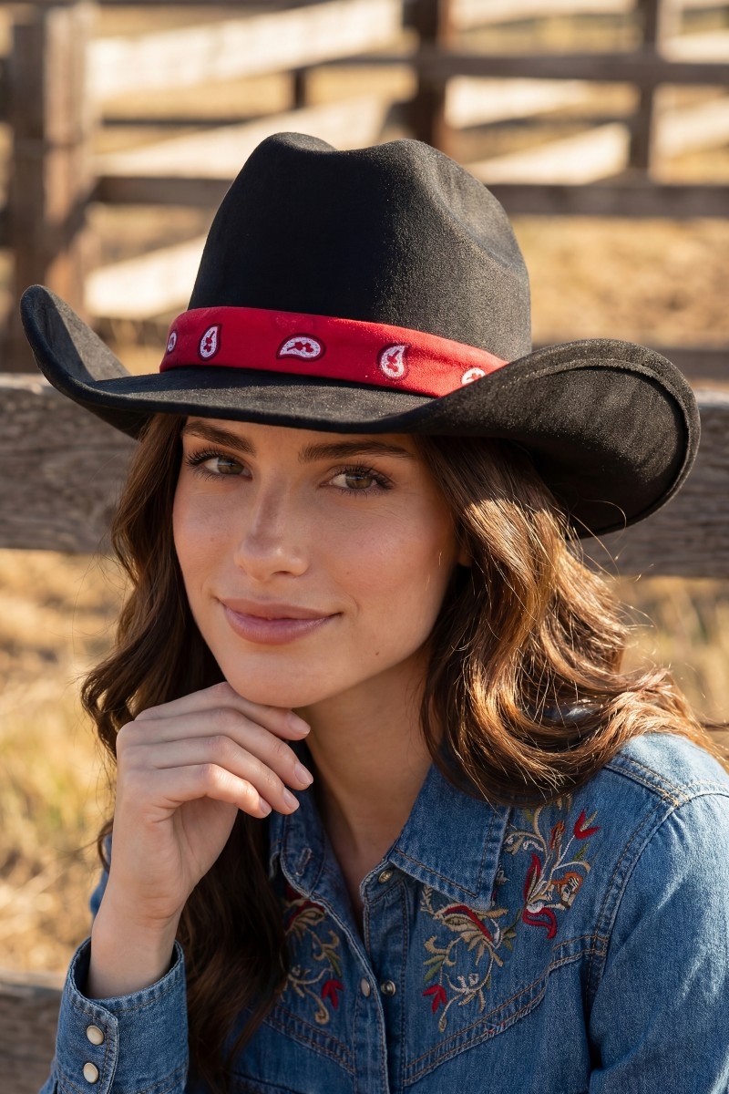 - This cowboy hat brings a luxurious paisley bandana scarf strap style. Explore a blend of classic charm and contemporary flair.