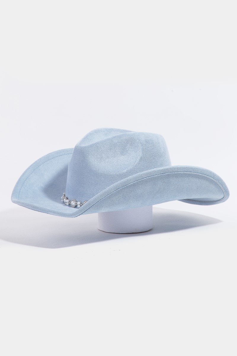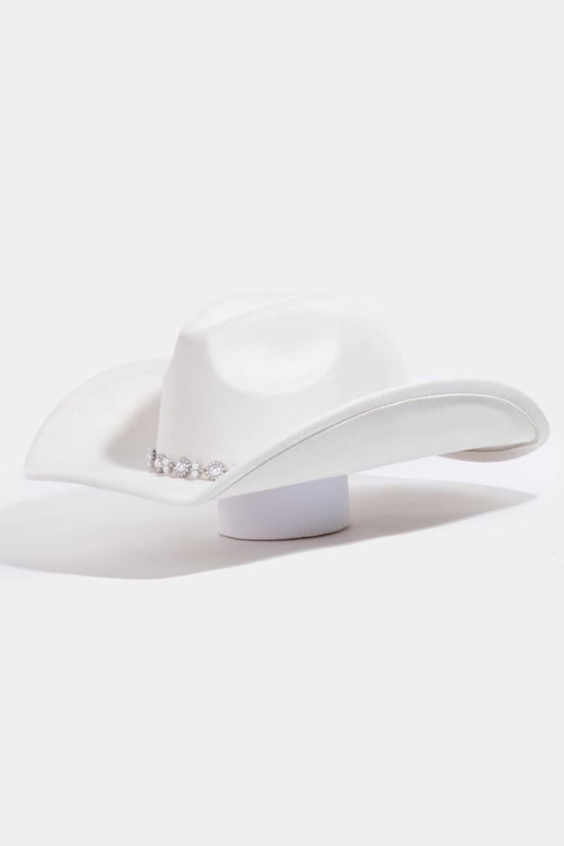 • This cowboy hat adds a modern pearl bead band style. Experience a burst of creativity in accessorizing as this piece effortlessly sets the tone for your unique style.