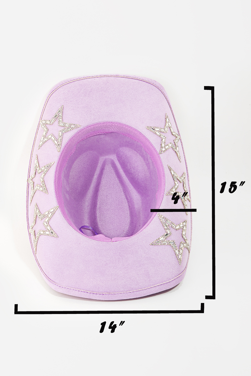 • This cowboy hat brings a unique studded rhinestone star style. Immerse yourself in the world of understated glamour as this cowboy hat effortlessly exudes timeless appeal.