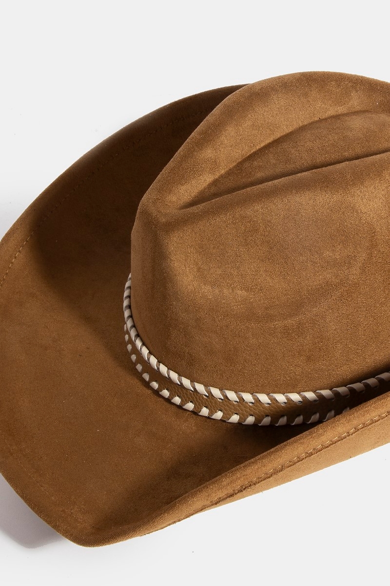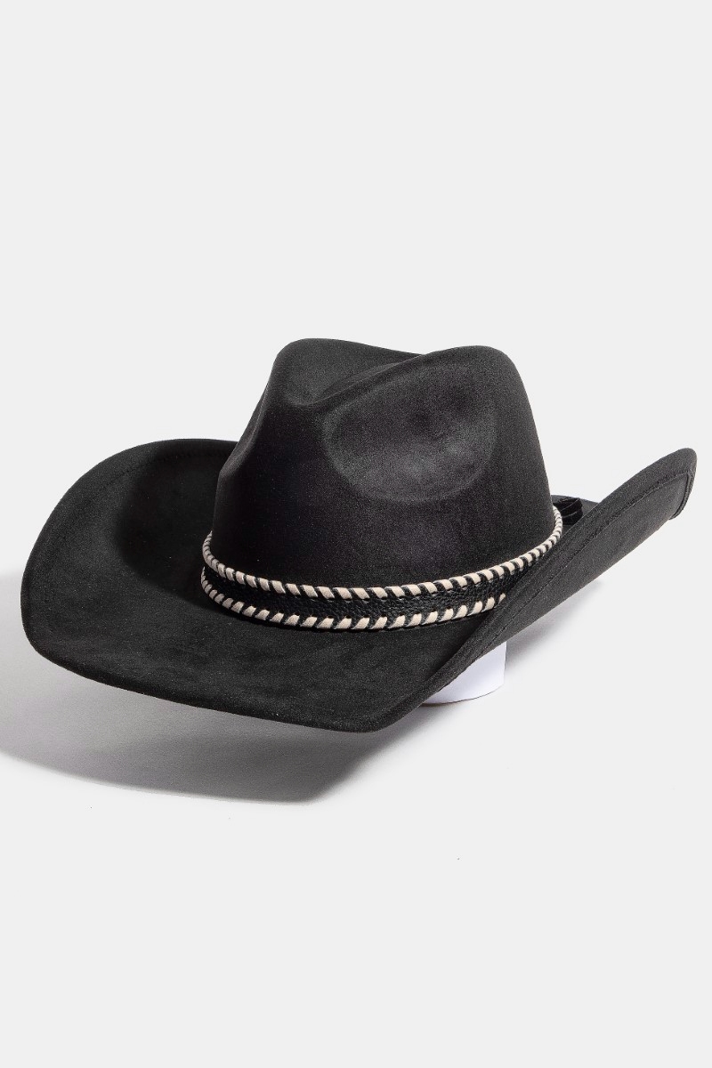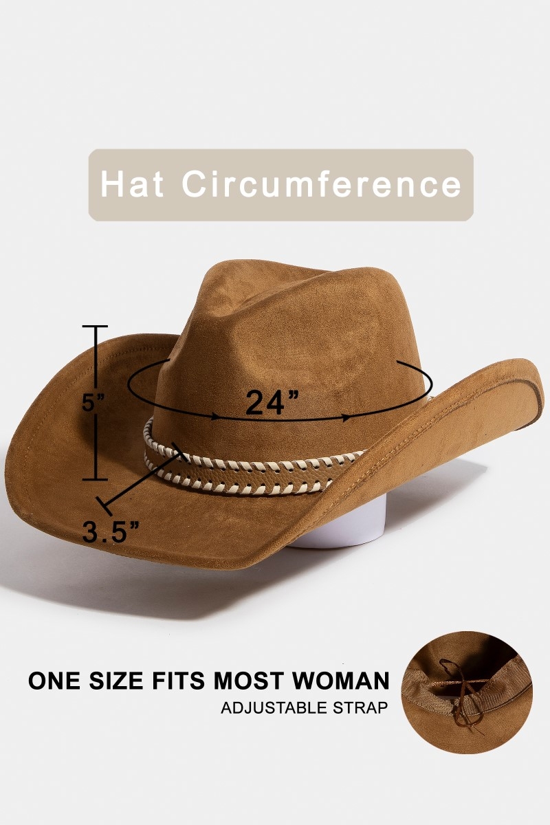 • This cowboy hat adds a modern braided strap faux suede western style. Immerse yourself in fashion finesse with this statement cowboy hat.