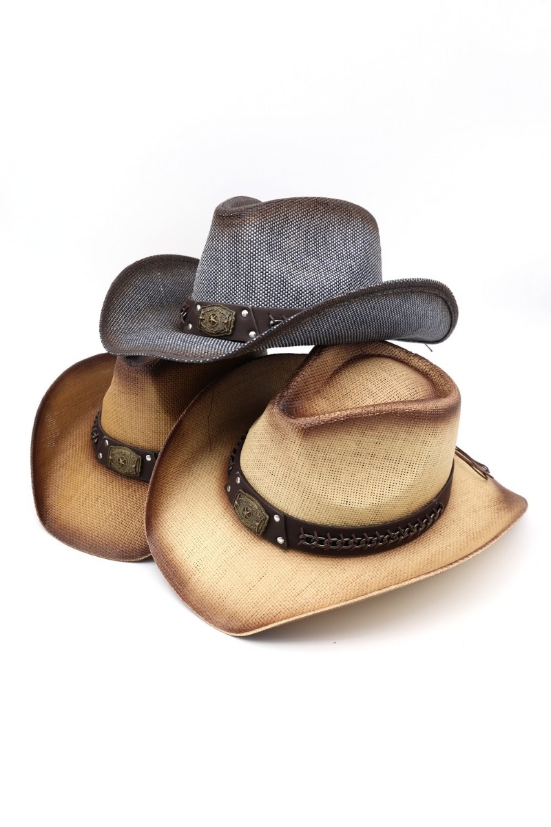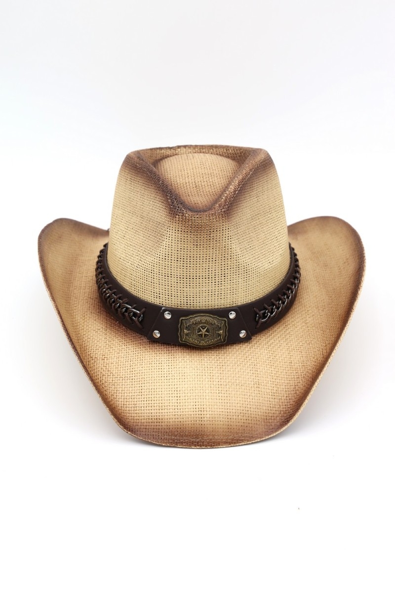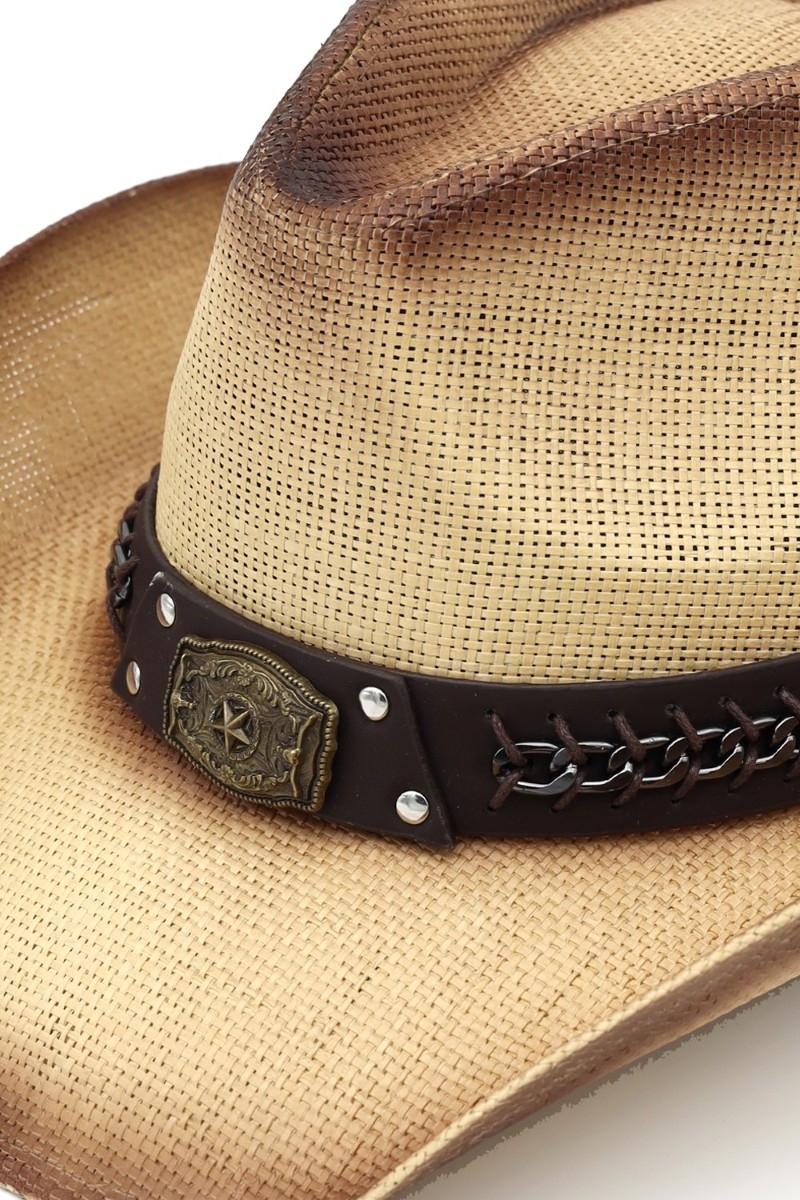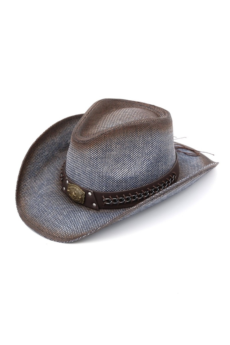 - This cowboy hat showcases a timeless western chain accent strap style. Explore a blend of classic charm and contemporary flair.