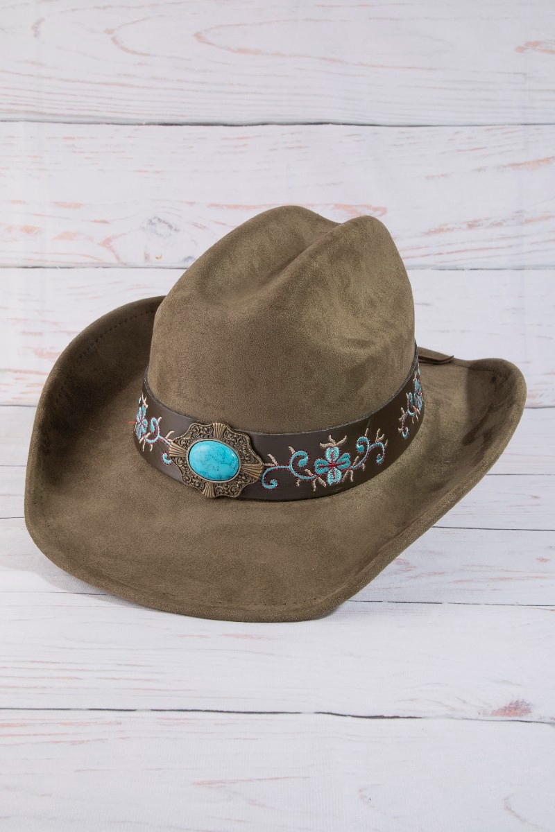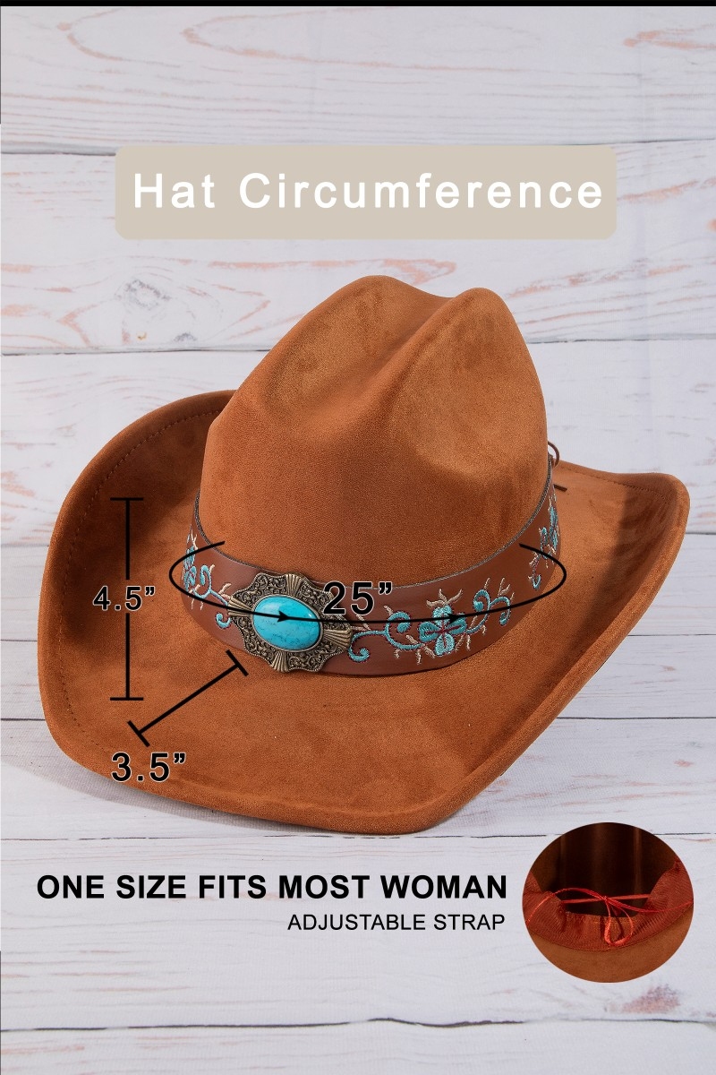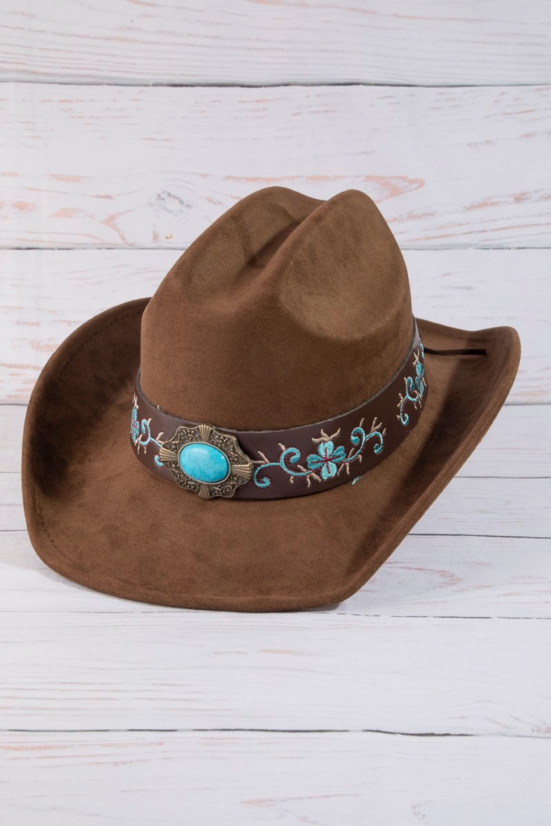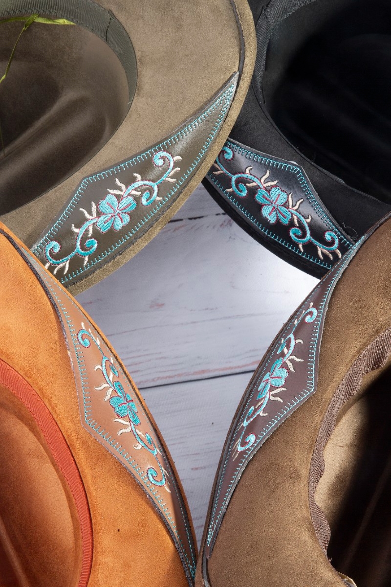 - This cowboy hat adds a modern western embroidered floral strap concho style. Savor the craftsmanship that goes beyond the ordinary, as this cowboy hat effortlessly captivates attention.