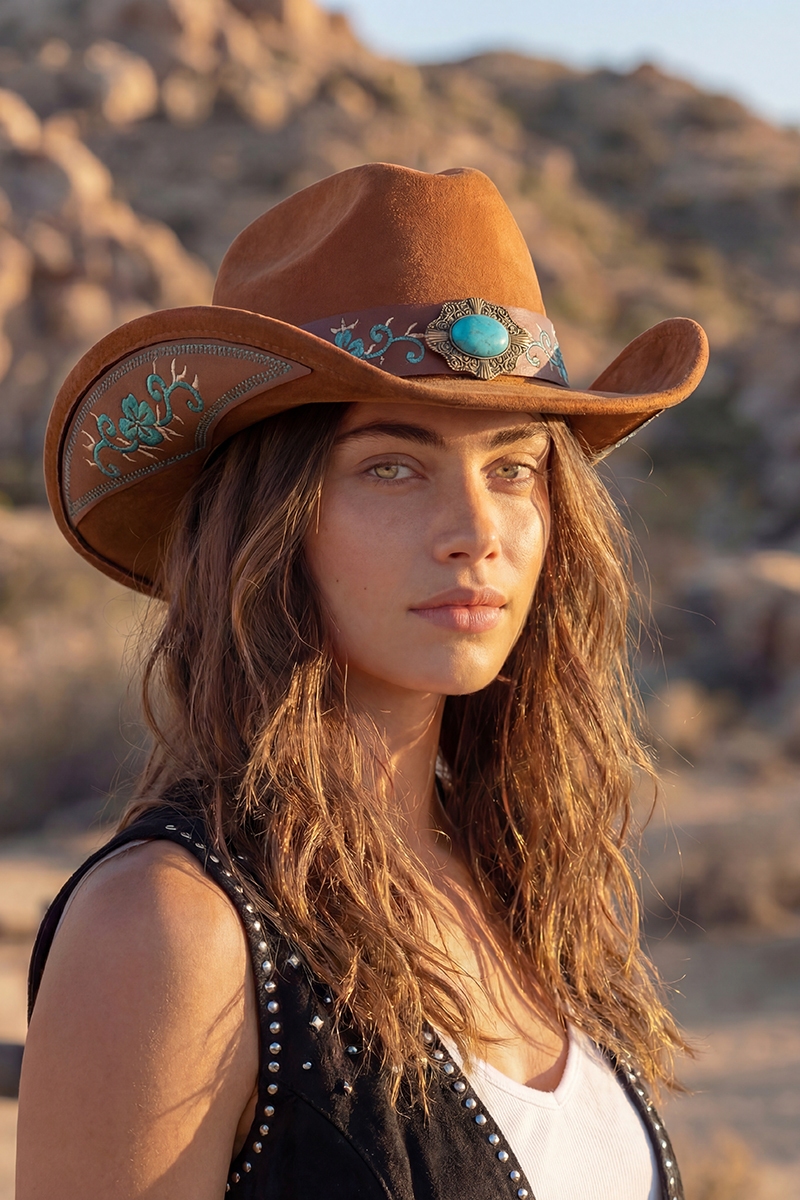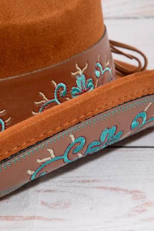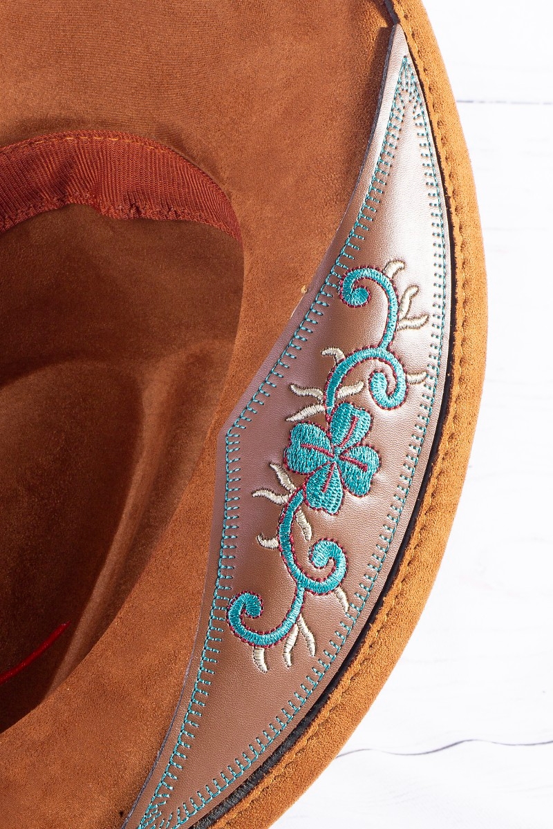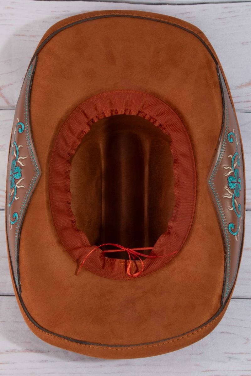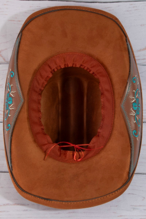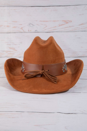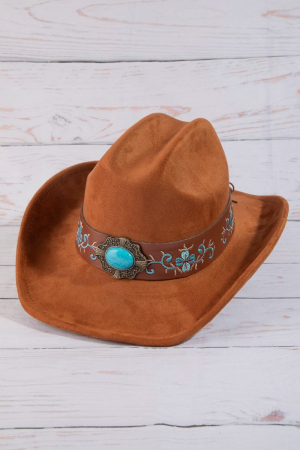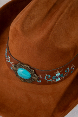 - This cowboy hat adds a modern western embroidered floral strap concho style. Savor the craftsmanship that goes beyond the ordinary, as this cowboy hat effortlessly captivates attention.