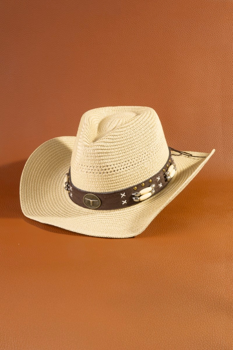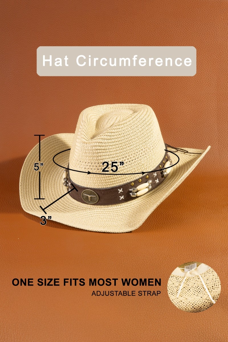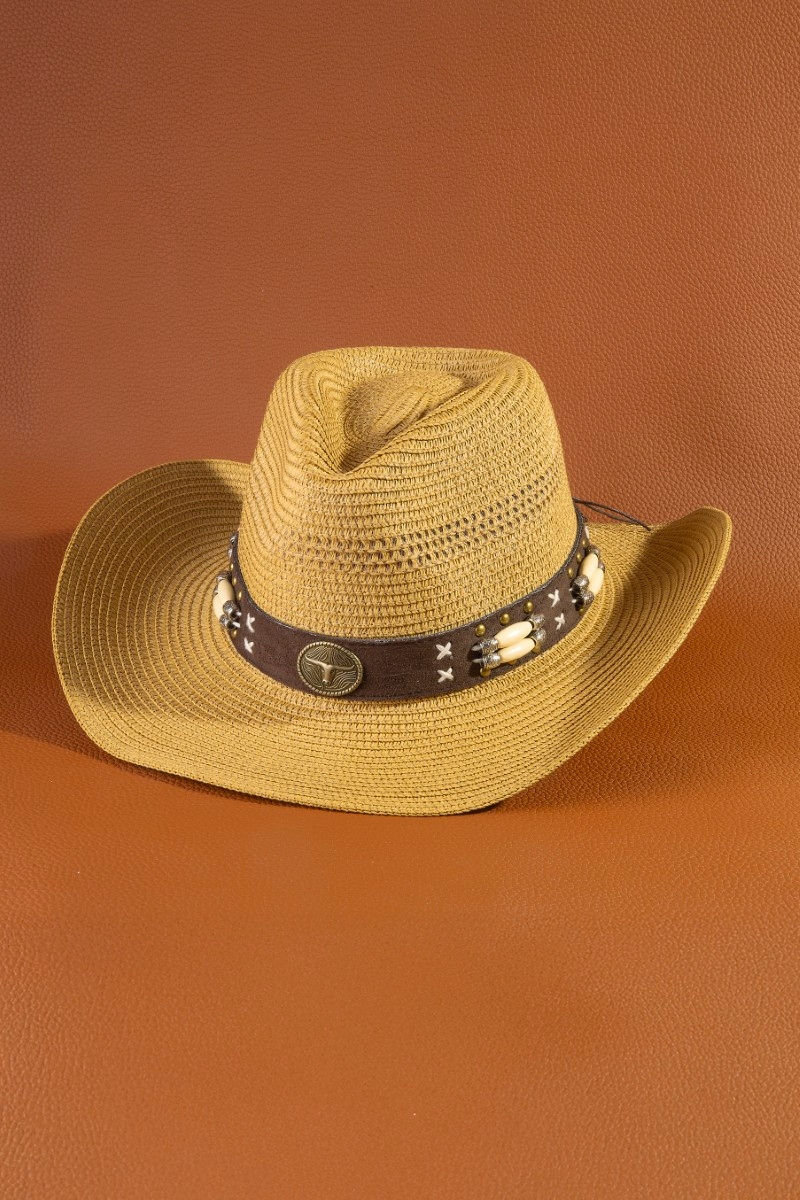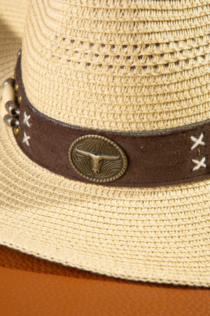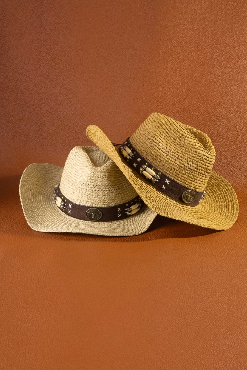 - This cowboy hat displays a vibrant western longhorn strap straw style. Savor the craftsmanship that goes beyond the ordinary, as this cowboy hat effortlessly captivates attention.