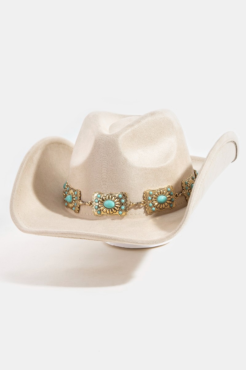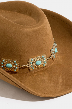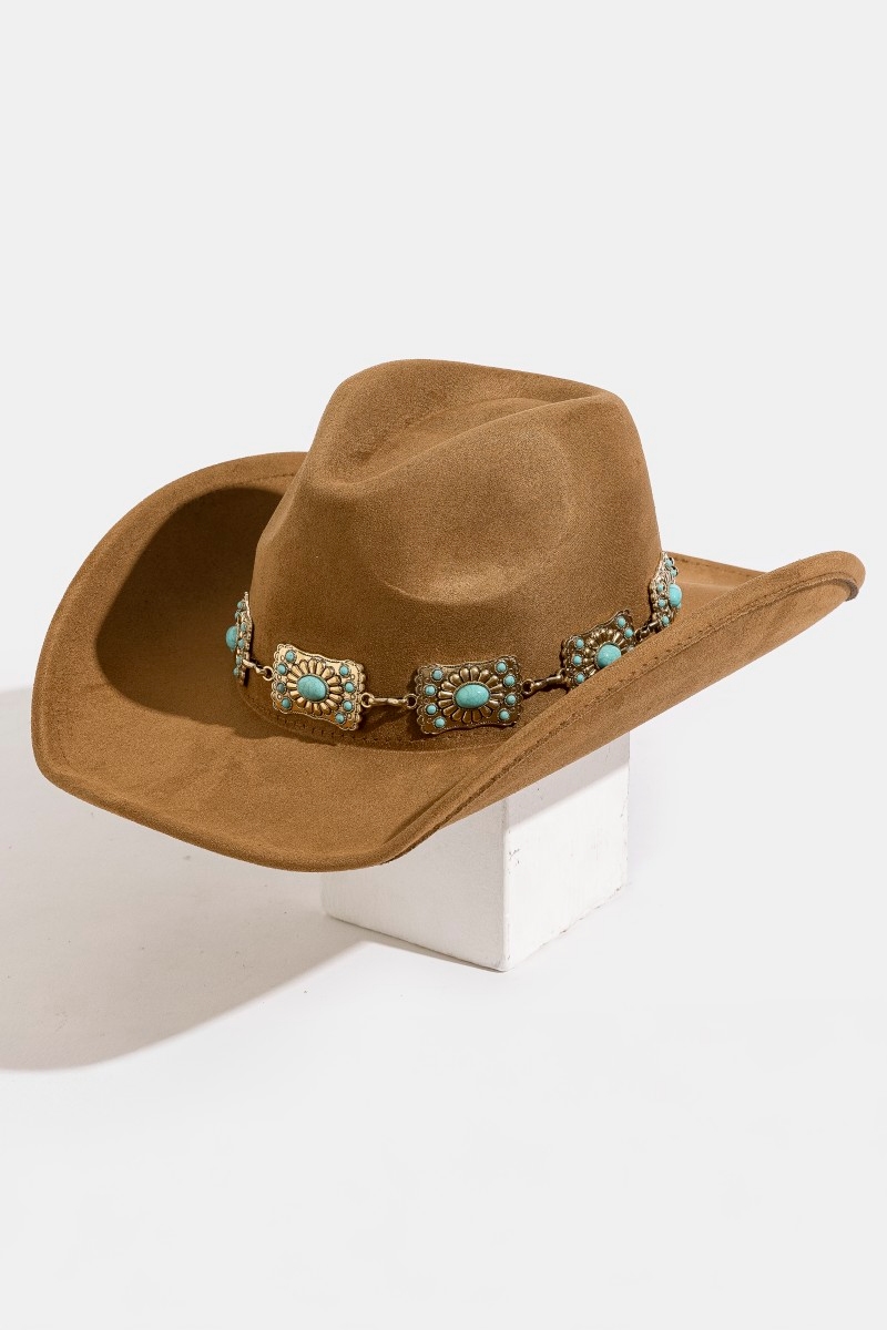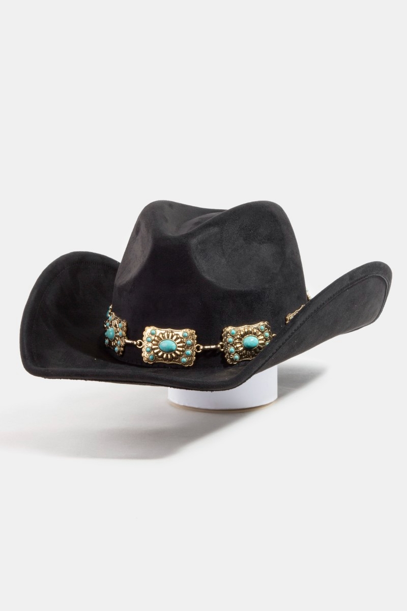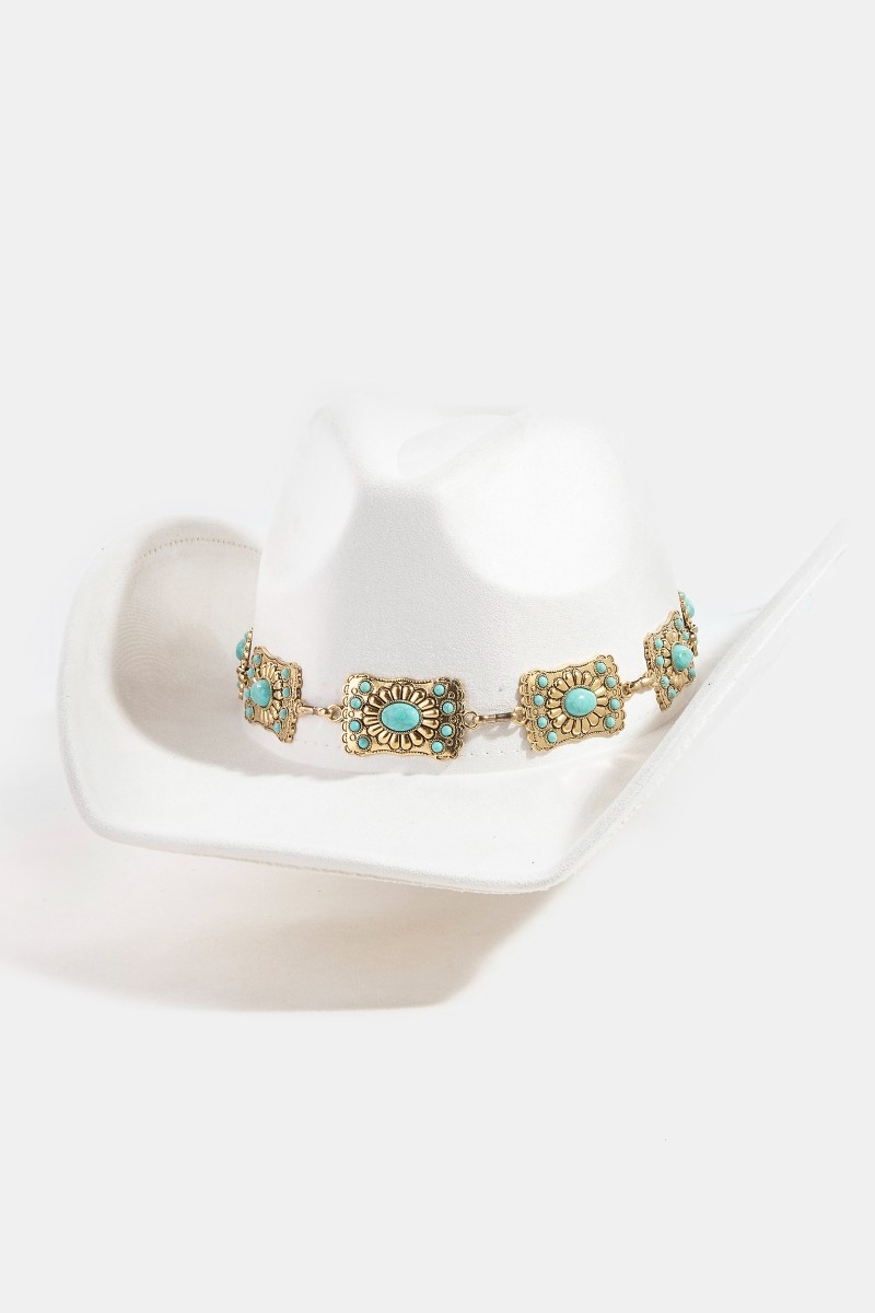 - This cowboy hat introduces a stunning western rectangle concho chain style. Discover the perfect balance of functionality and fashion.
