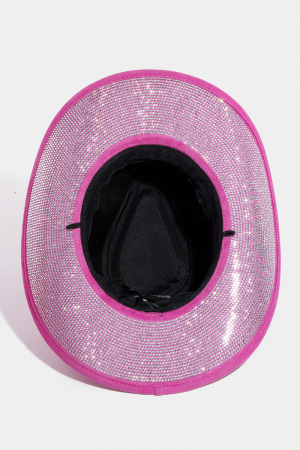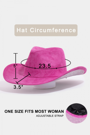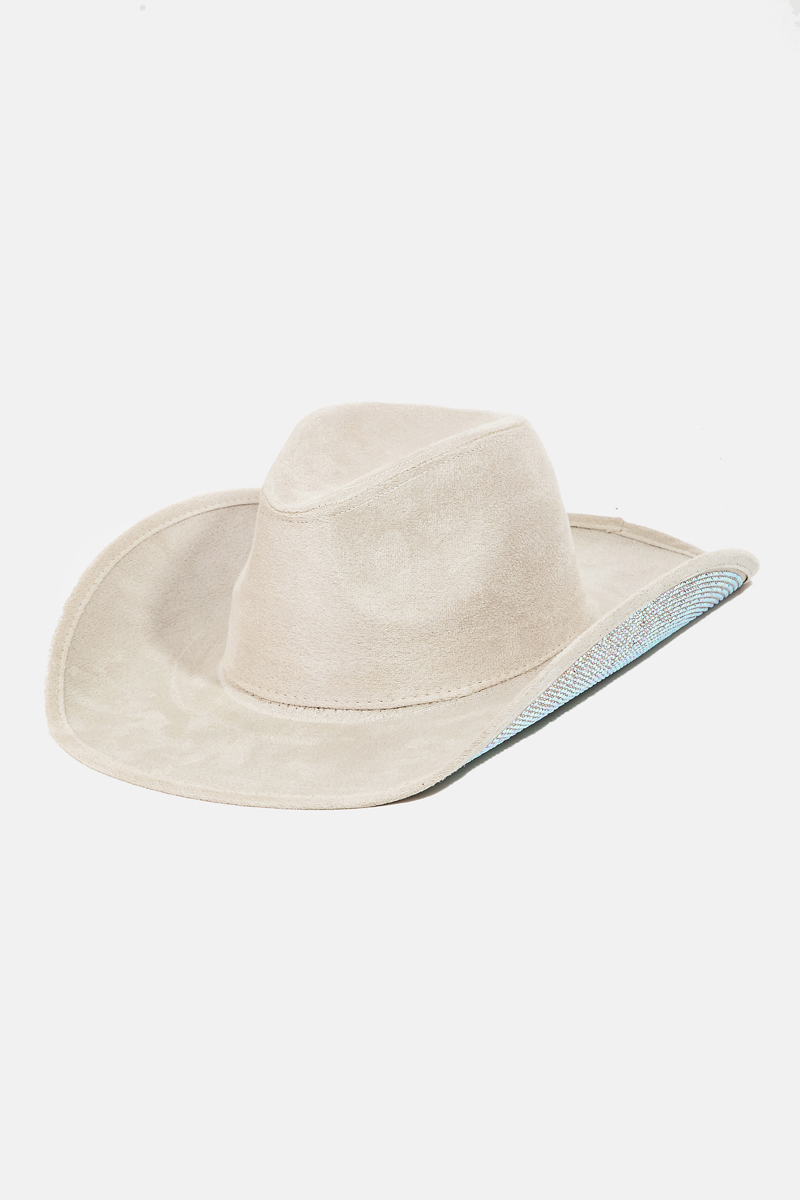 - This cowboy hat brings a unique studded rhinestone brim style. Experience refined sophistication with this understated yet stylish piece.
