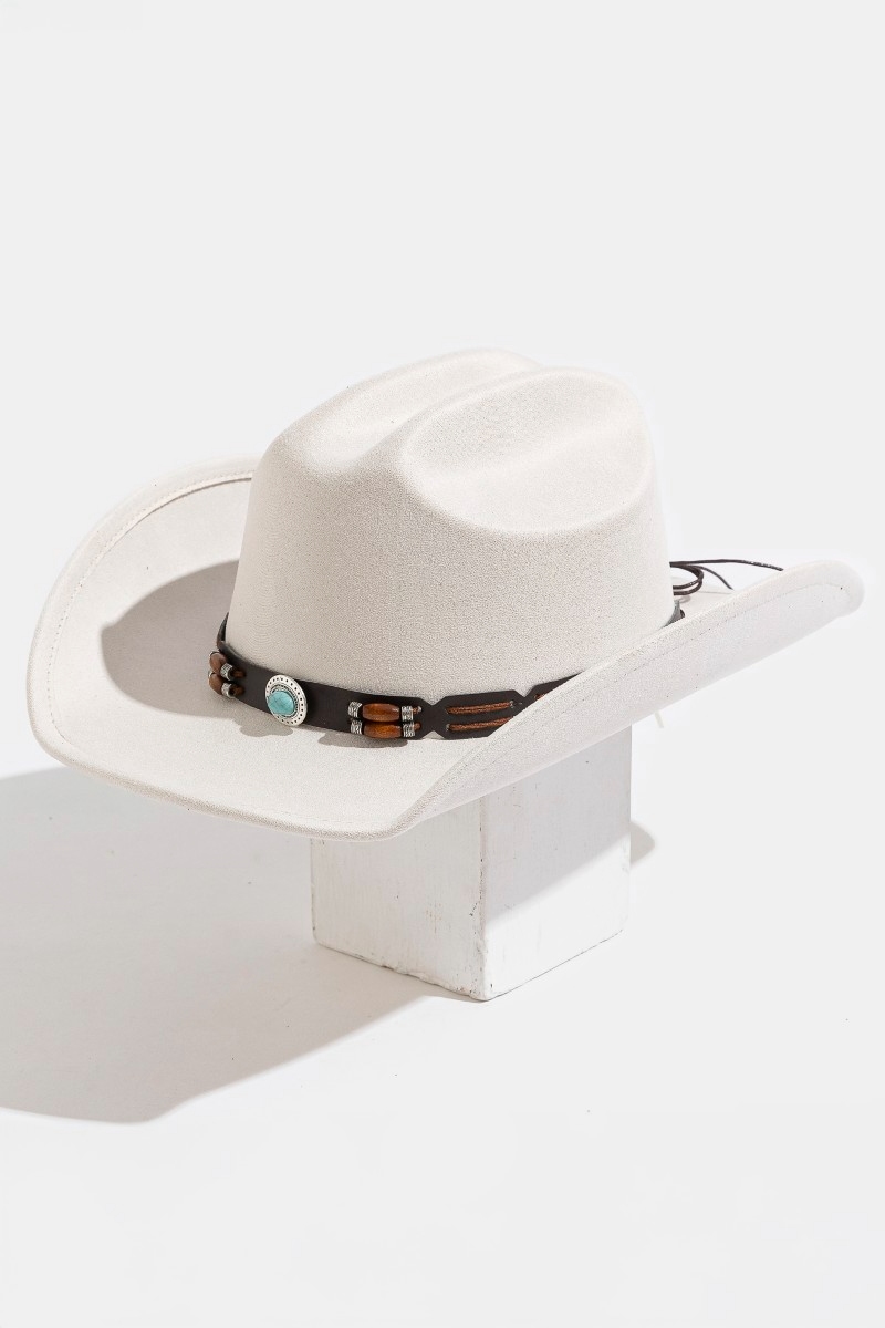 - This cowboy hat brings a luxurious western turquoise decor band style. Experience a subtle blend of modernity and classic charm as this cowboy hat effortlessly adorns your ensemble.