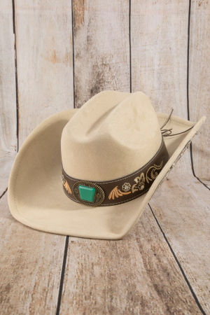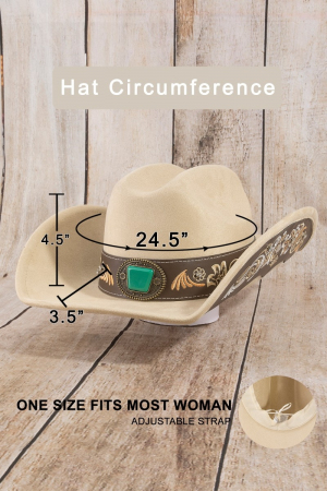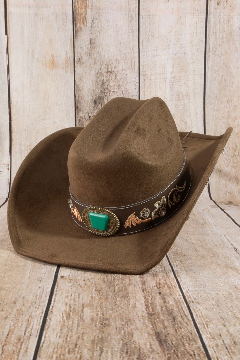 - This cowboy hat adds a modern embroidered strap with stone western style. Celebrate individuality with this cowboy hat that effortlessly expresses your unique sense of style.