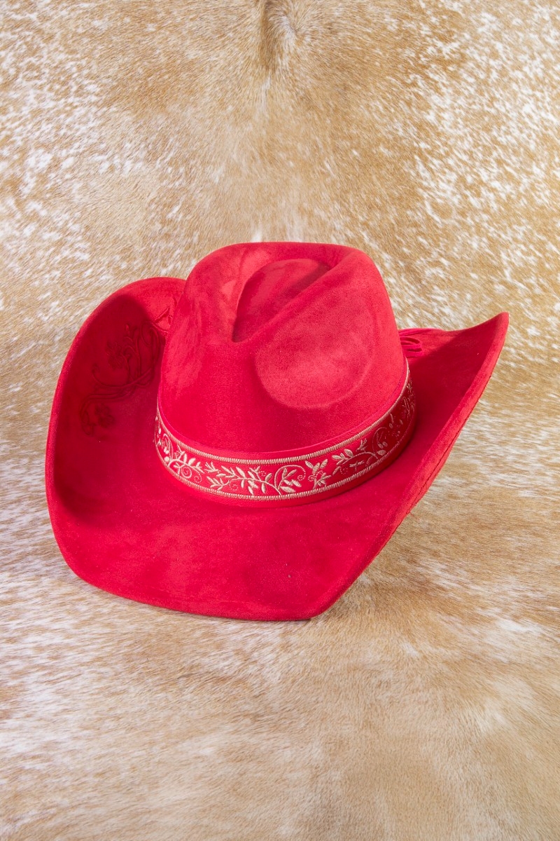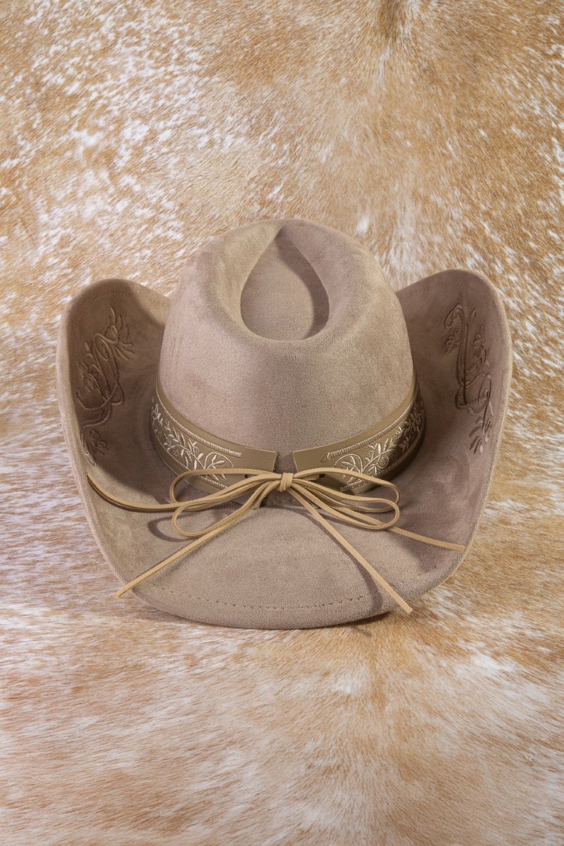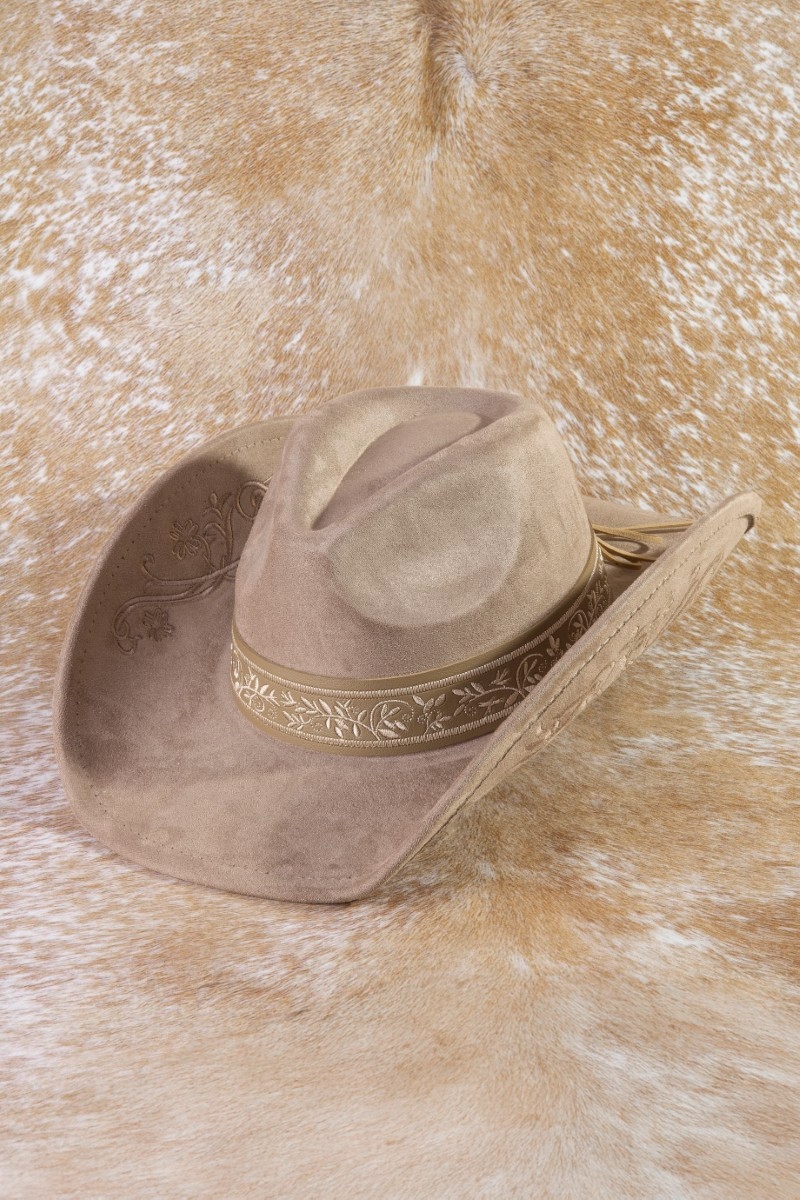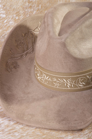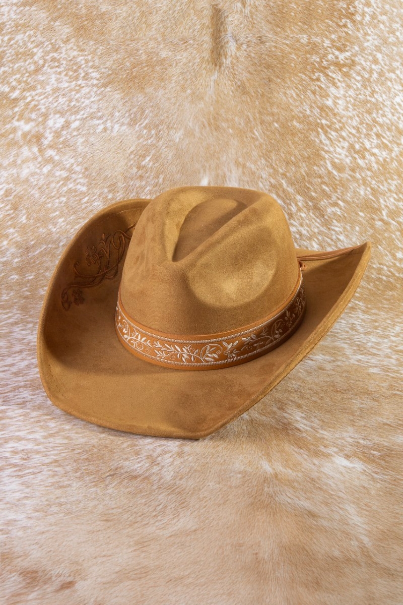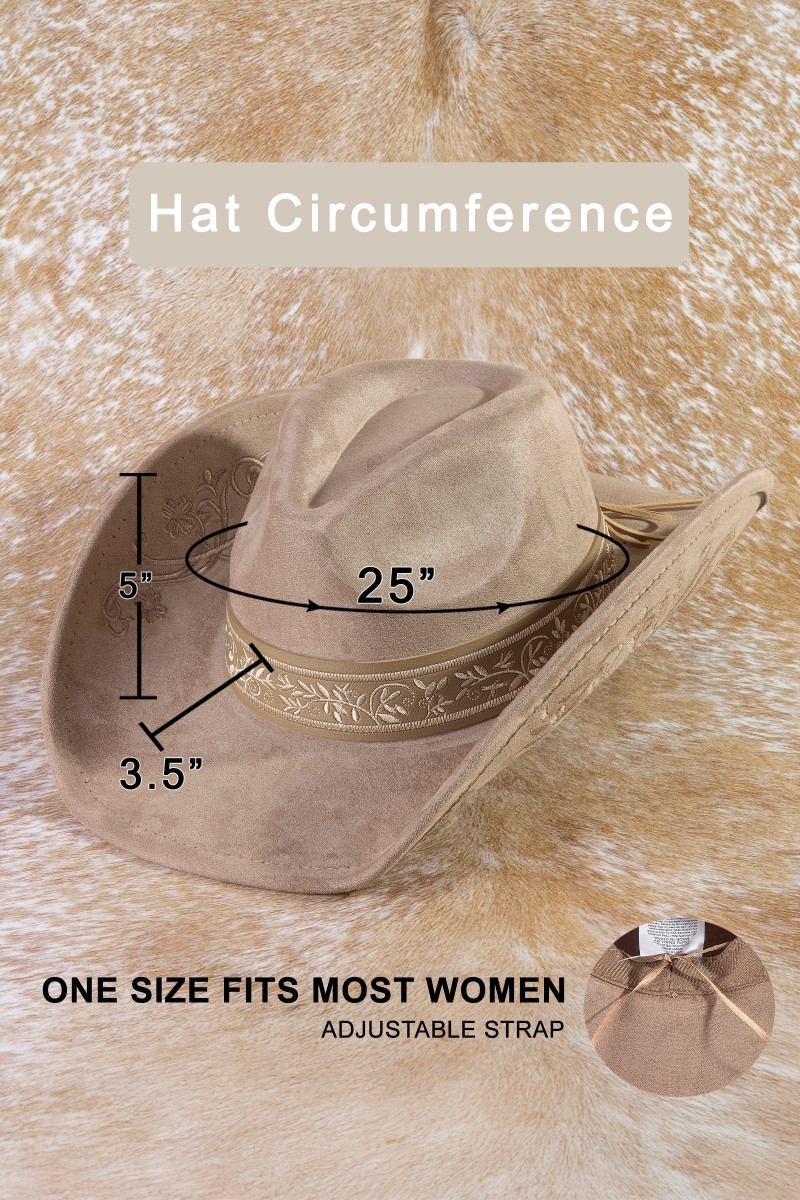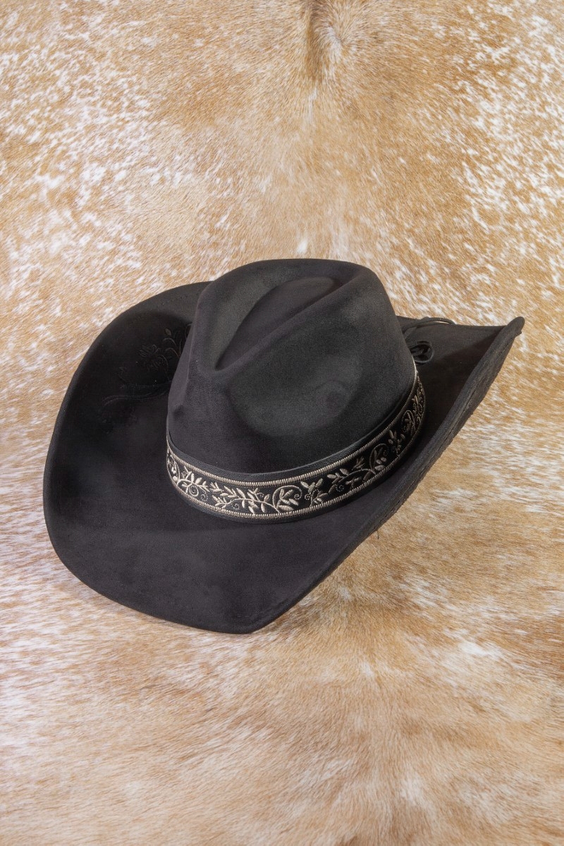 • This cowboy hat brings a unique embroidered vines western style. Experience a subtle blend of modernity and classic charm as this cowboy hat effortlessly adorns your ensemble.
