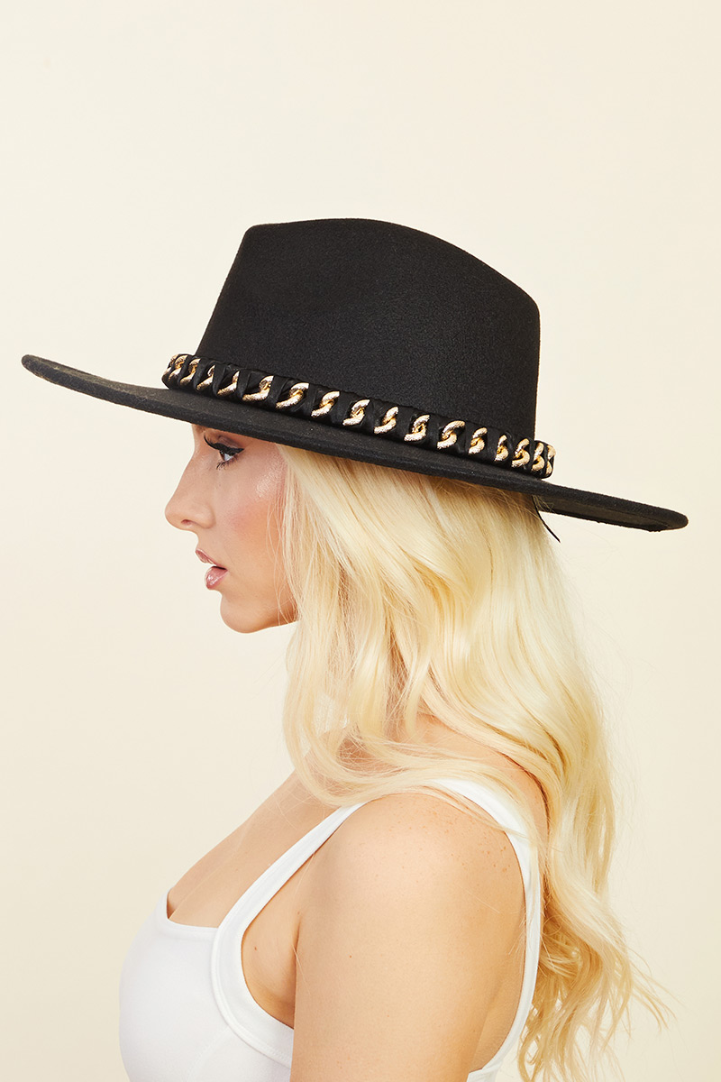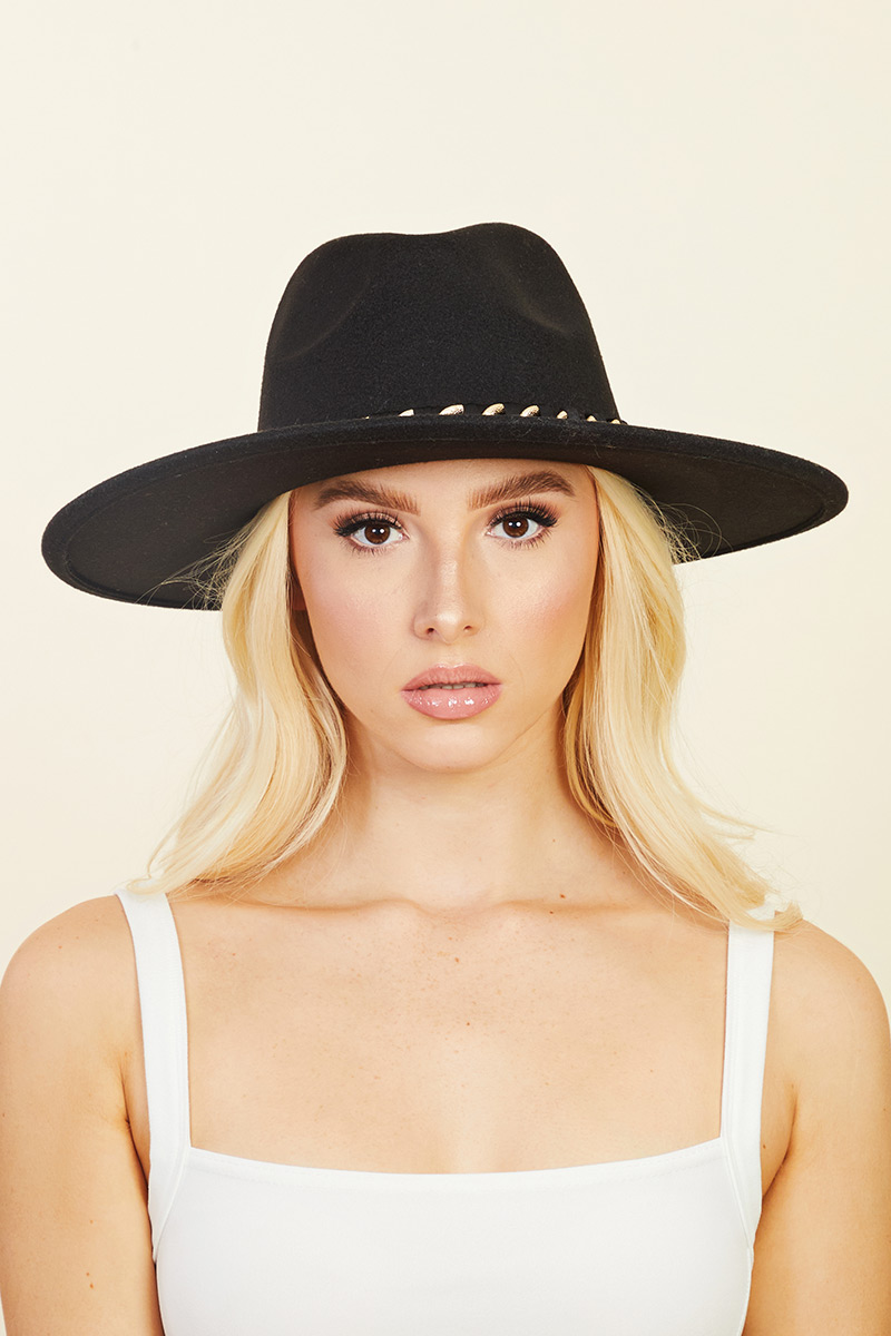 Western Studded Strap Suede Fedora Hat