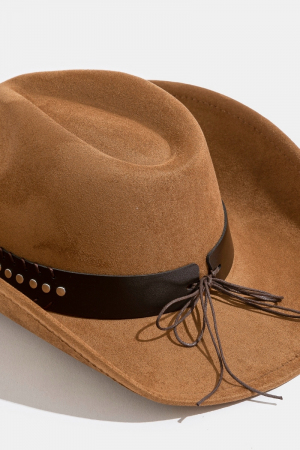 - This cowboy hat introduces a unique studded western bull head strap style. Immerse yourself in the world of understated glamour as this cowboy hat effortlessly exudes timeless appeal.