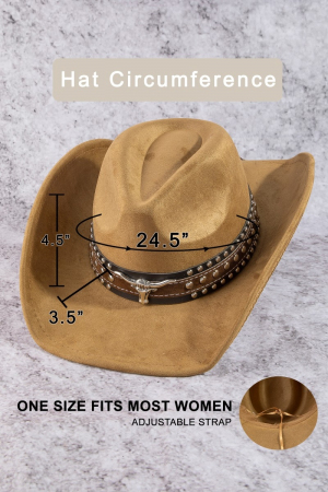- This cowboy hat displays a vibrant layered western bull head strap style. Immerse yourself in the details of design, as this cowboy hat effortlessly becomes a conversation starter.