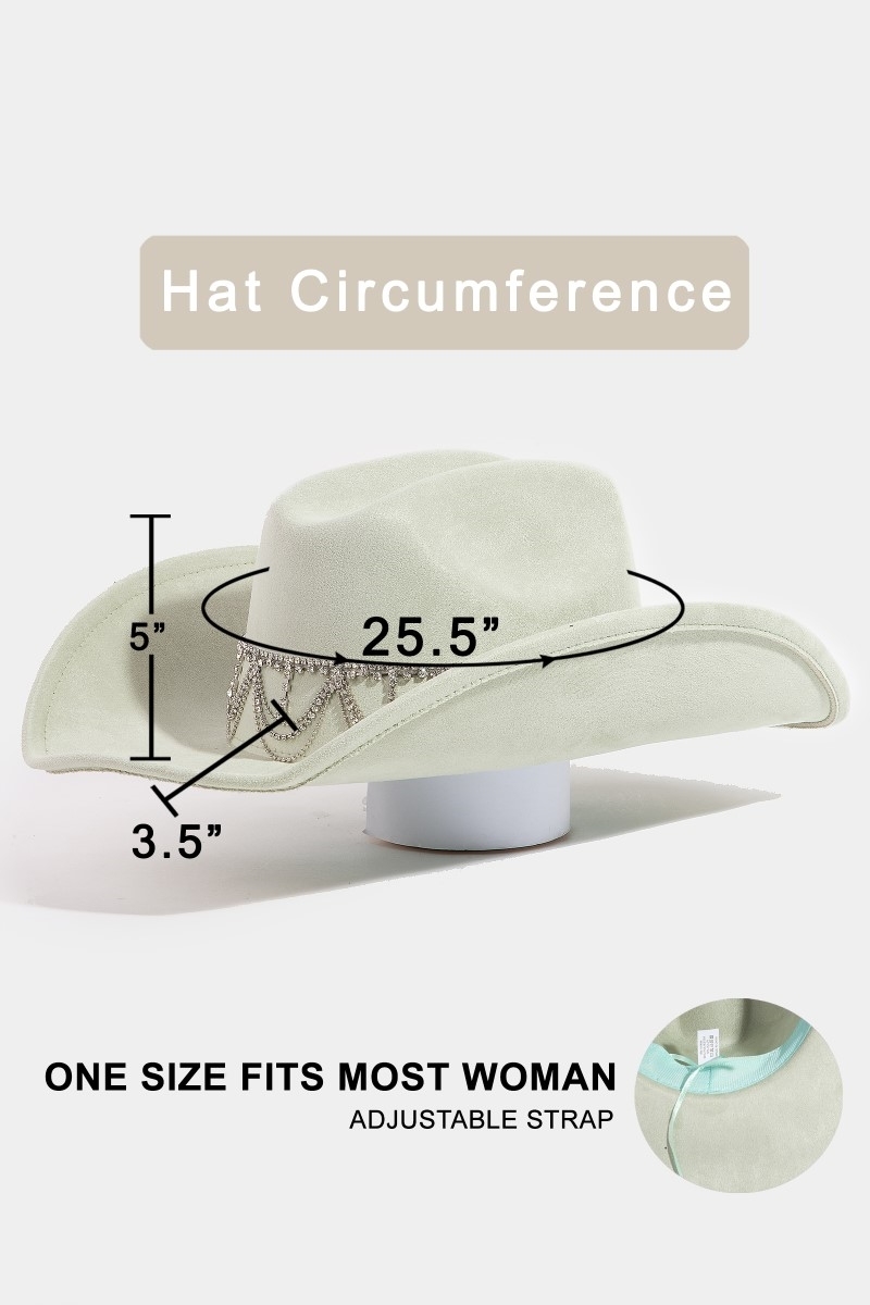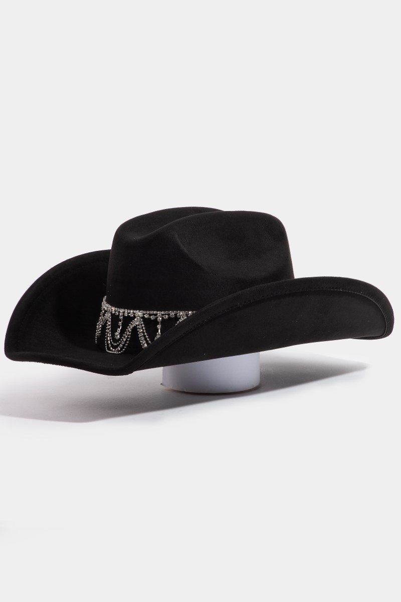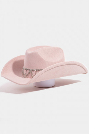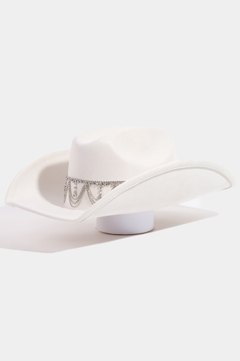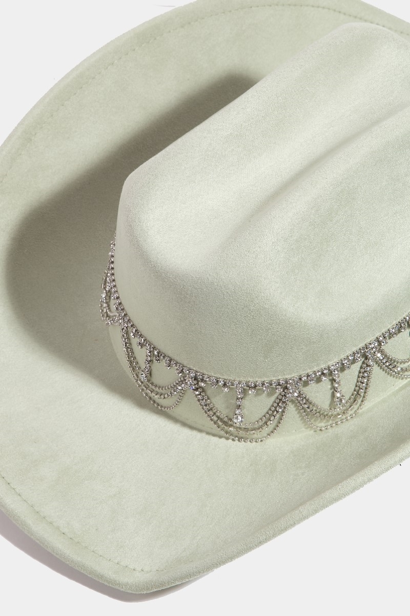 - This cowboy hat adds a modern rhinestone chain link style. Witness the transformative power of accessories as this piece effortlessly redefines your fashion narrative.