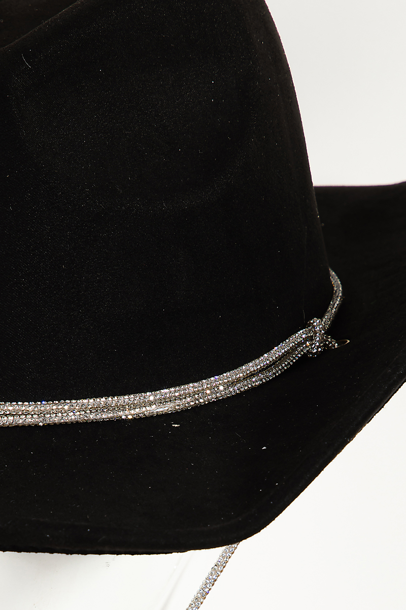 - This cowboy hat features a fashionable rhinestone rope strap western style. Celebrate the art of accessorizing with this piece that effortlessly encapsulates modern trends.