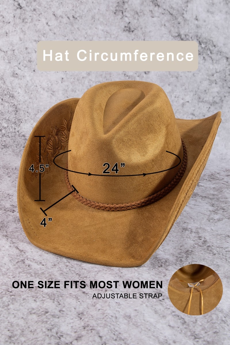- This cowboy hat showcases a unique rose embroidered braided band fedora style. Experience the joy of accessorizing with this piece that effortlessly combines versatility and charm.