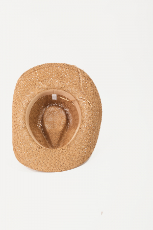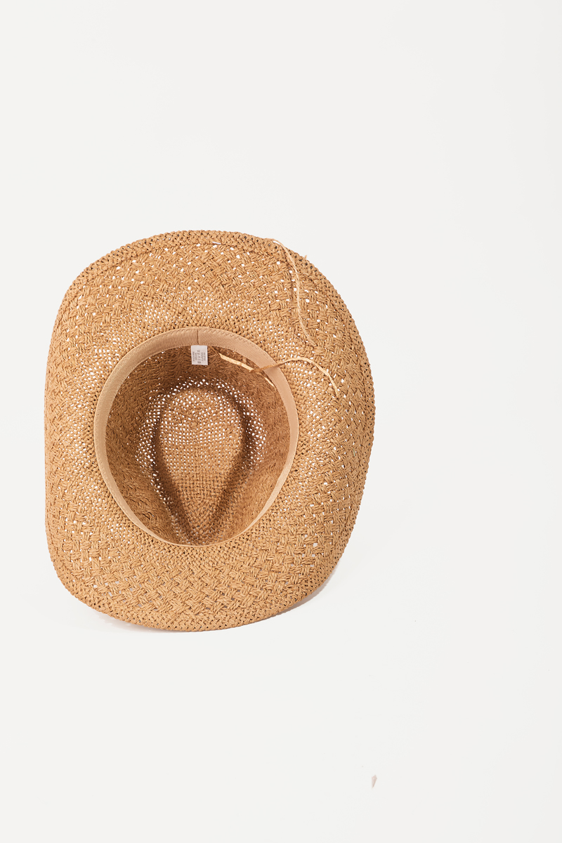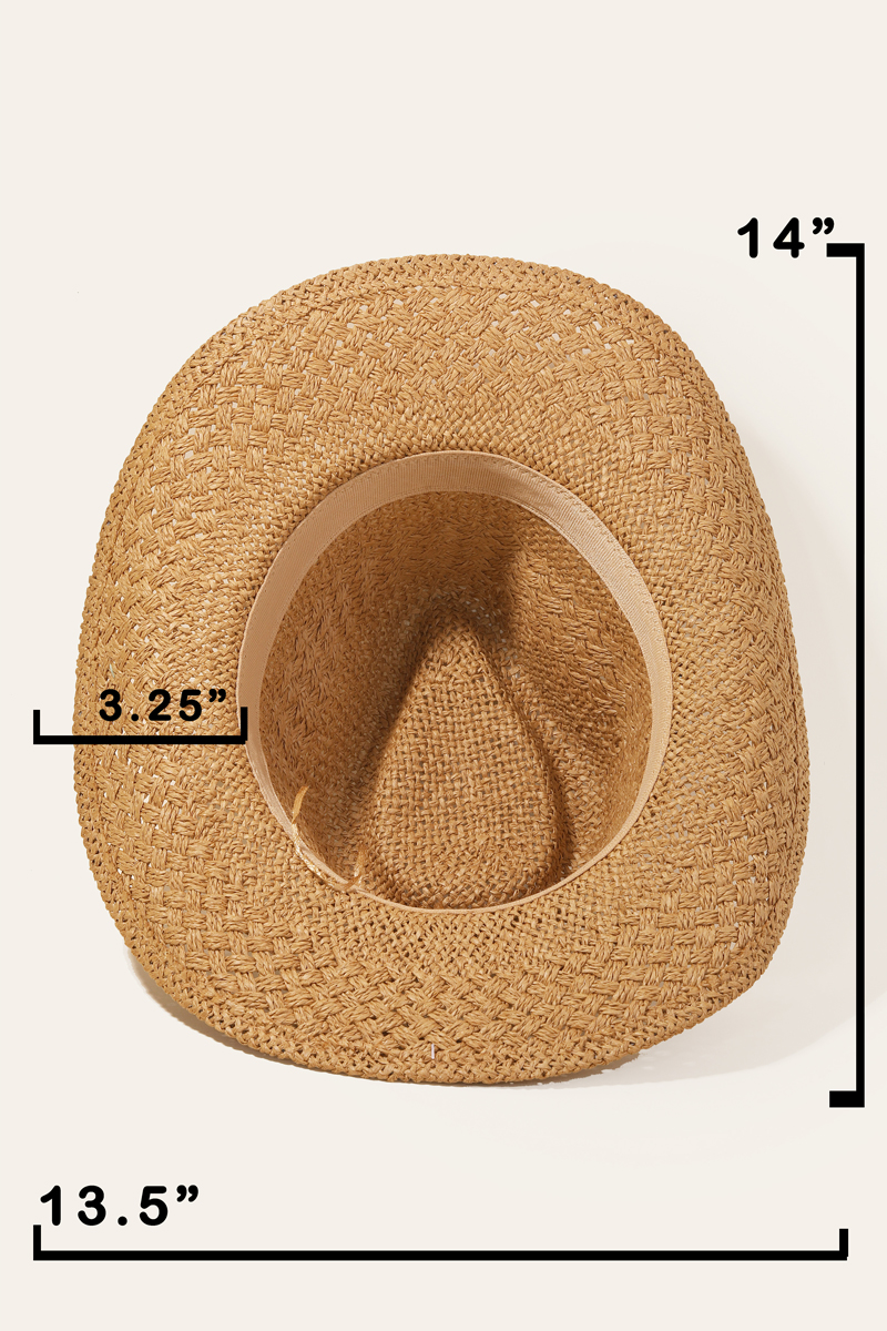 • This cowboy hat features a fashionable straw braid cowrie shell strap style. Immerse yourself in fashion finesse with this statement accessory.