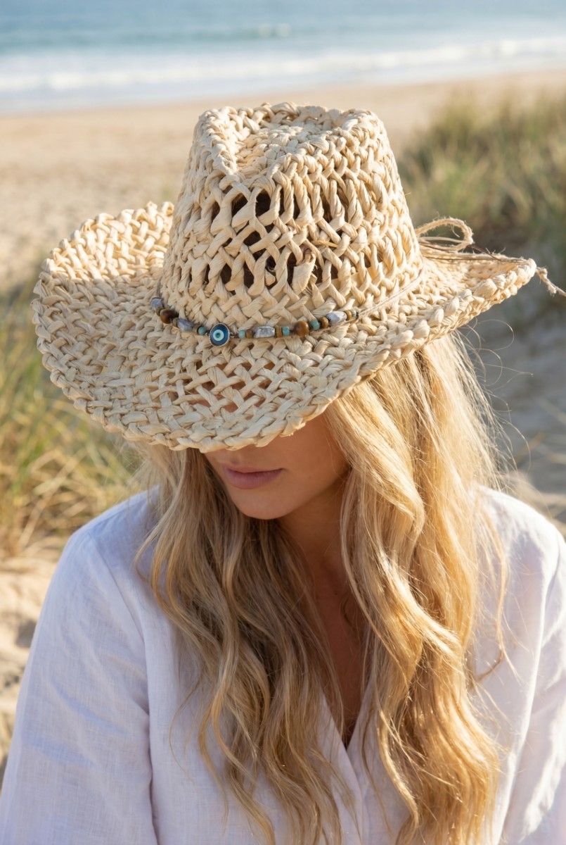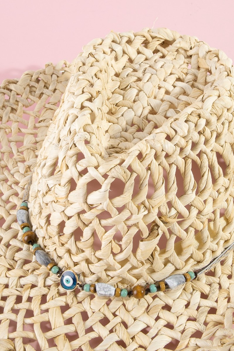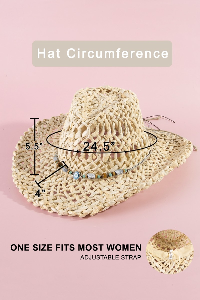 - This cowboy hat brings a stunning basket weave western evil eye strap style. Delight in the nuanced details that make this cowboy hat a testament to fine design and impeccable taste.