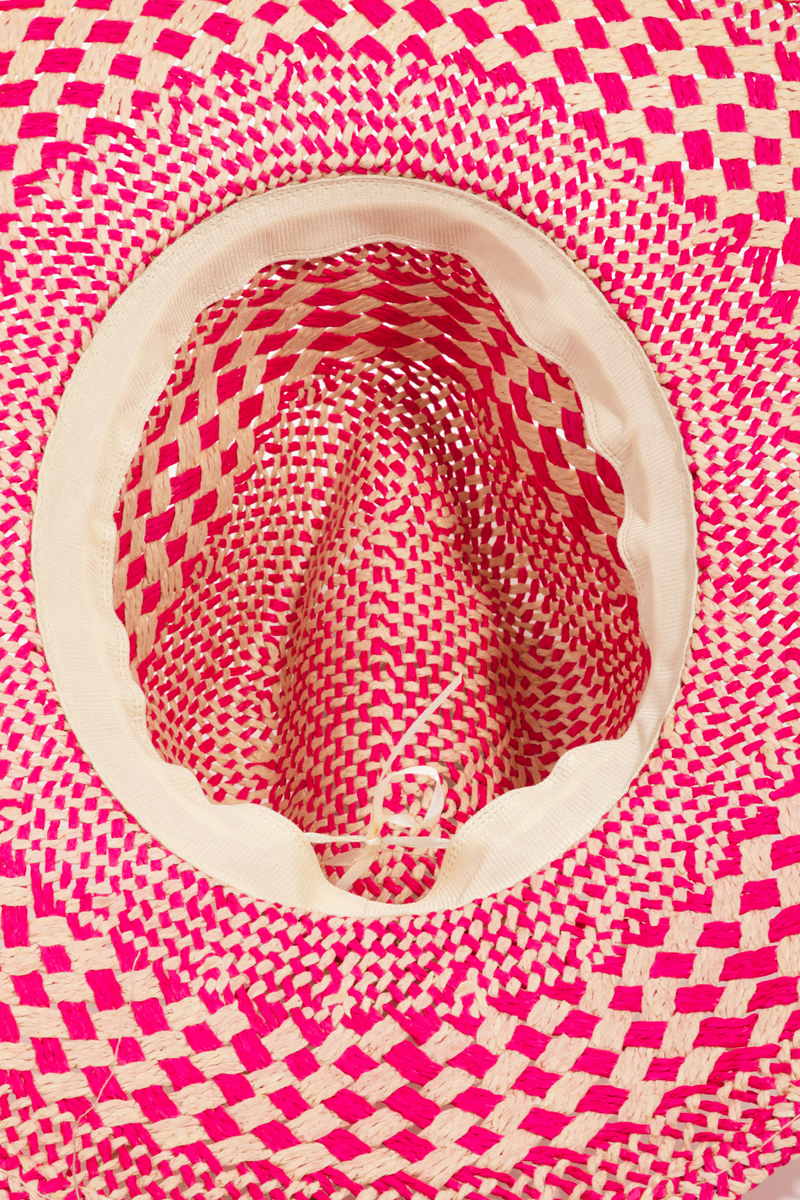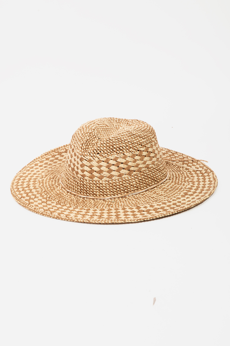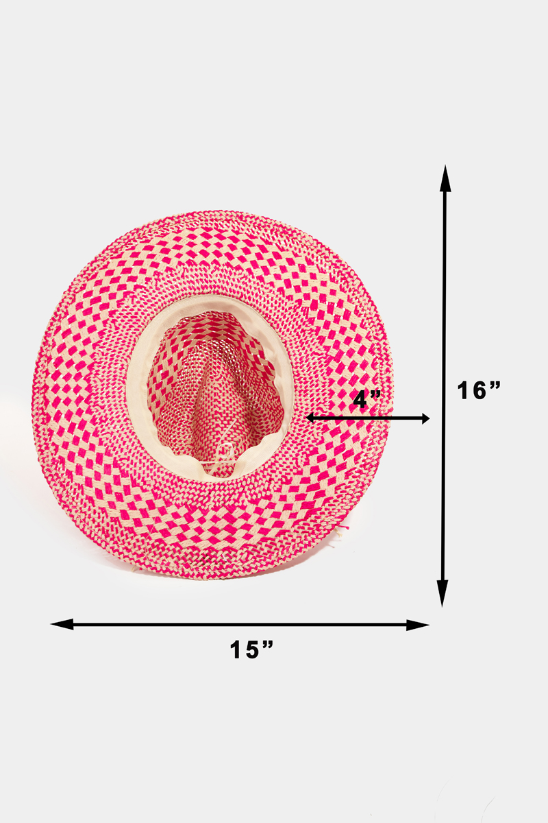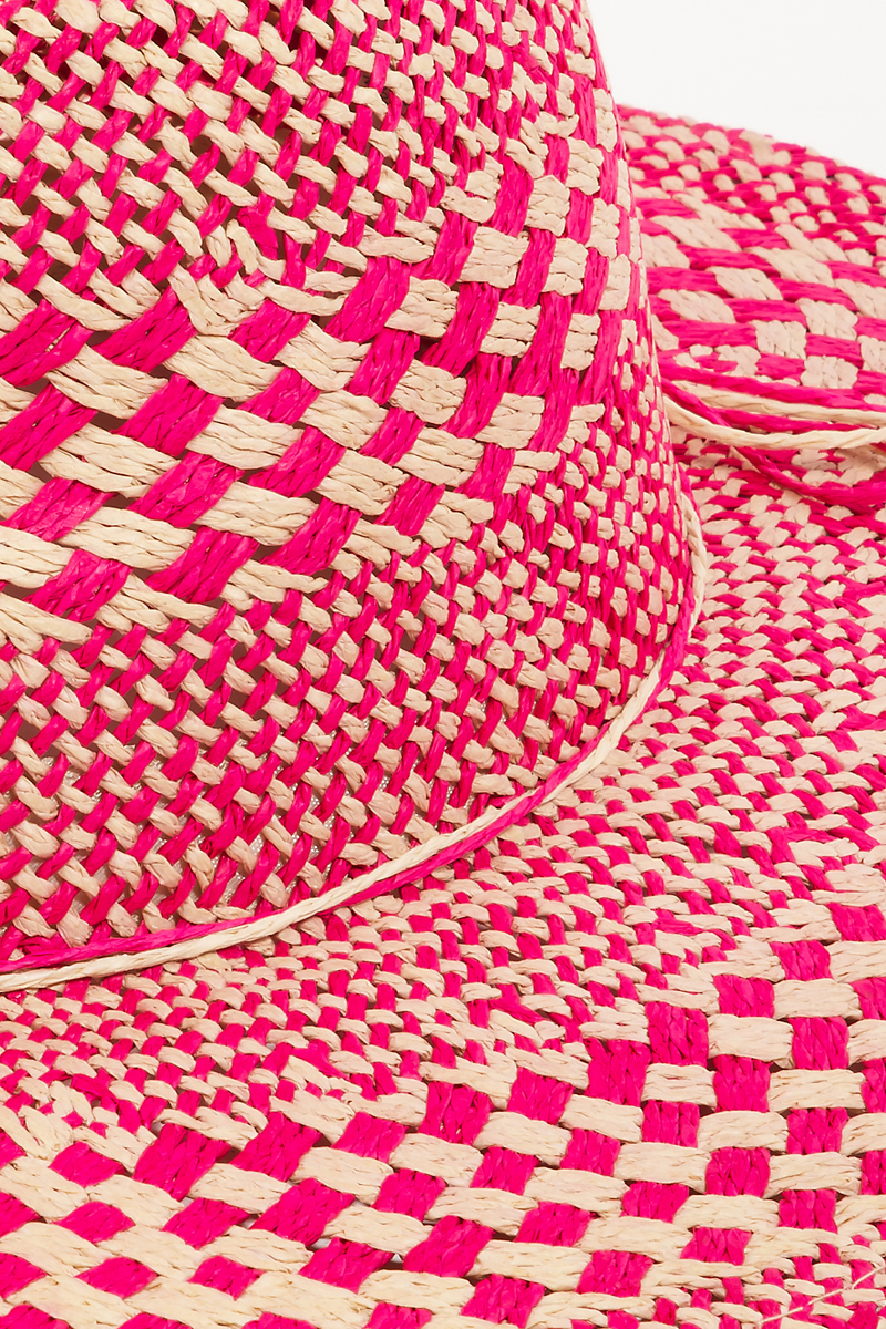 • This straw hat brings a luxurious checkered straw weave sun hat style. Unveil modern elegance with this subtly intricate accessory.